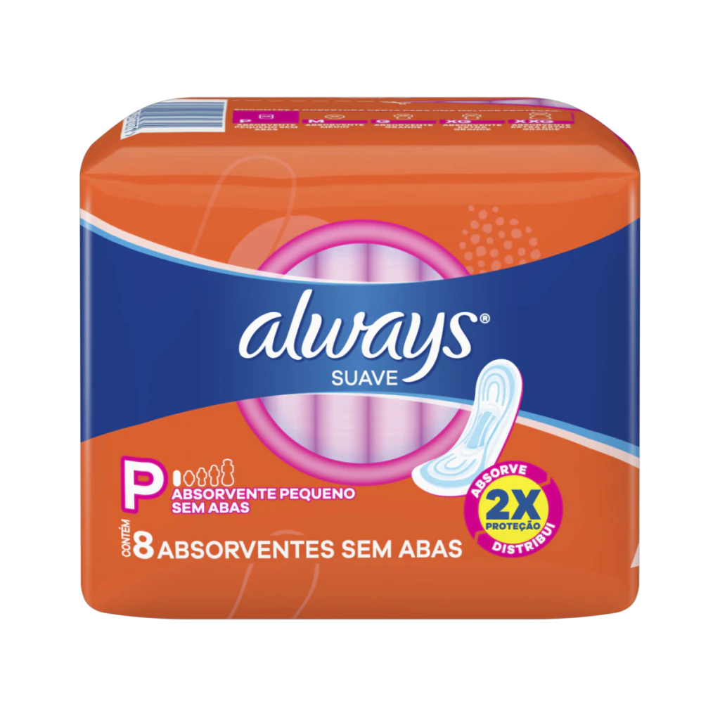Absorvente Always Super Proteção Suave sem AbasSinta-se limpa e confortável com o novo "Always Super Proteção" com formato anatômico, desenhado para a mulher brasileira, que se adapta ao seu corpo e calcinha, mantendo a umidade longe da sua pele. -Formato Anatômico que se adapta ao seu corpo. -Cobertura antiumidade. -Barreiras Antivazamentos. -Centro Anatômico de Absorção. -Cobertura Suave como algodão*. -Formato adaptável que absorve onde o seu corpo mais precisa. -Com Abas. -*não contém fibras de algodão. *Compre Produtos Always.