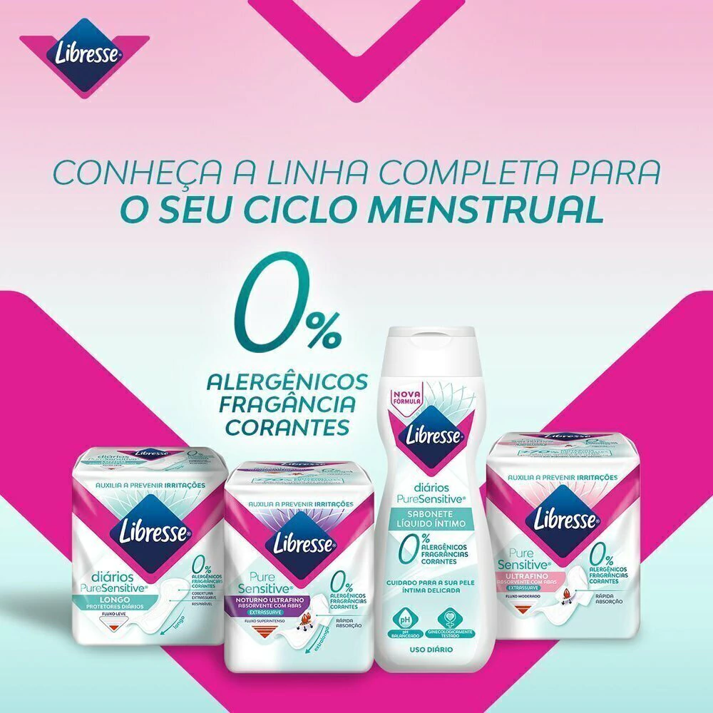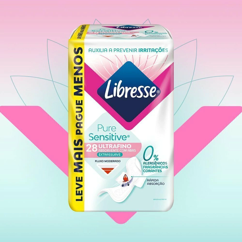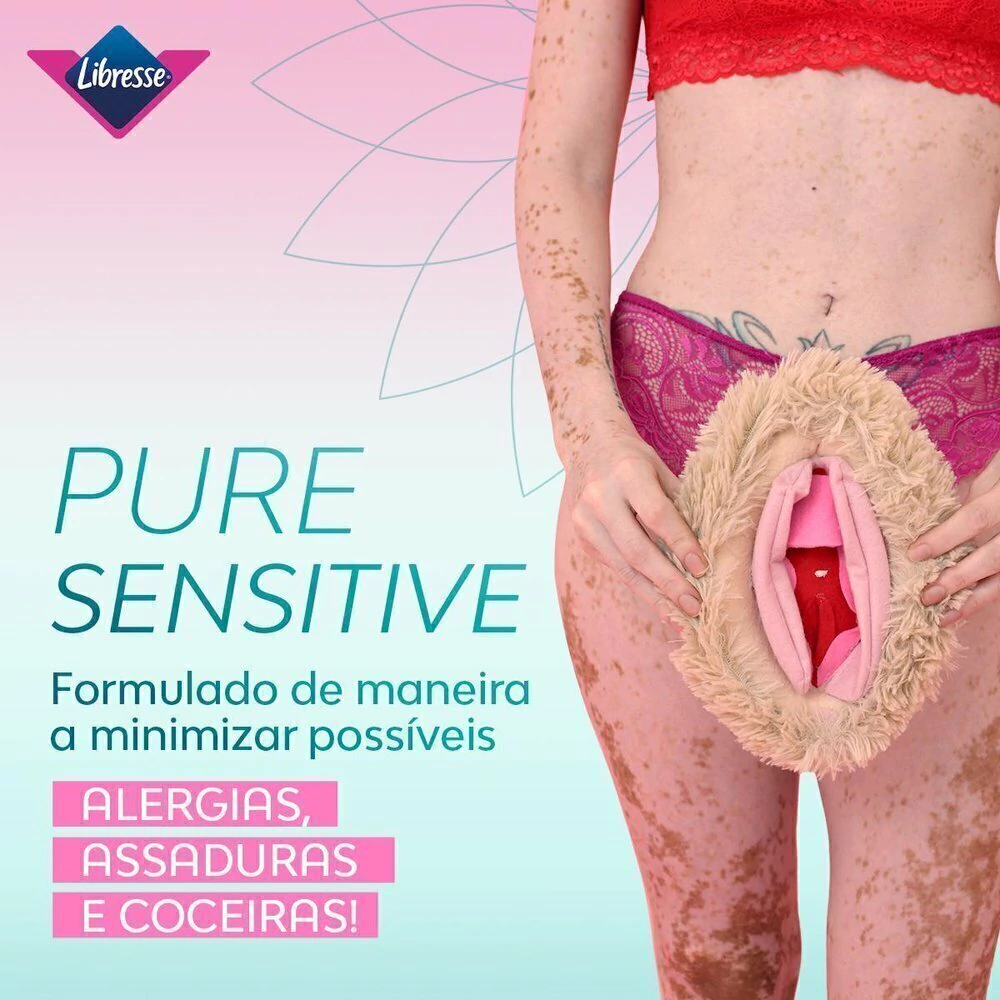 "Libresse é uma marca com uma linha completa de produtos para o ciclo menstrual. Acreditamos que o ciclo menstrual é único. Vamos surpreender e transformar a relação com a sua menstruação, oferecendo um lugar seguro sem vazamentos e desconfortos. Nosso absorvente com abas hipoalergênico Pure Sensitive Ultrafino Dia foi feito para você para tem um fluxo moderado e vai viver seu dia com máxima proteção independentemente das suas atividades. Com tecnologia exclusiva Securefit® possui formas distintas na face frontal e na face traseira que se moldam perfeitamente ao seu corpo. Quase invisível com máxima absorção para te deixar segura e confortável. Com abas, ultrafino, discreto, seguro e muito confortável. São 0% alergênicos, fragrâncias e corantes para proteger com delicadeza e suavidade sua Zona V (que não é apenas sua vagina e sua vulva!), pensando em você que sofre com alergias, coceiras e assaduras. Suas embalagens são individuais para maior praticidade e conveniência. Produto dermatologicamente testado.