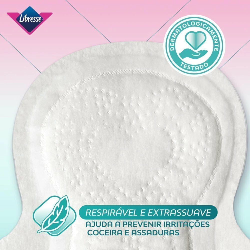o Tecnologia SecureFit® - Adaptação perfeita ao seu corpo e seus movimentos evitando vazamentos; o Cobertura Extrassuave e Respirável - Macio e confortável. Circulação do ar, mantendo a pele fresca (sem abafar), seca e saudável; o Cuidado da pele sensível durante a menstruação - Auxilia a prevenir irritações, coceiras e assaduras. São 0% alergênicos, fragrâncias e corantes; o Ultrafino - Garante conforto e proteção com discrição; o Os componentes são atóxicos e dermatologicamente testados - o melhor para a sua pele sensível íntima. o Produto hipoalergênico. "