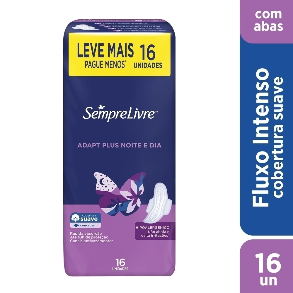Absorvente Externo Sempre Livre Adapt Plus Noite e Dia Cobertura Suave com Abas 16un Leve Mais Pague Menos