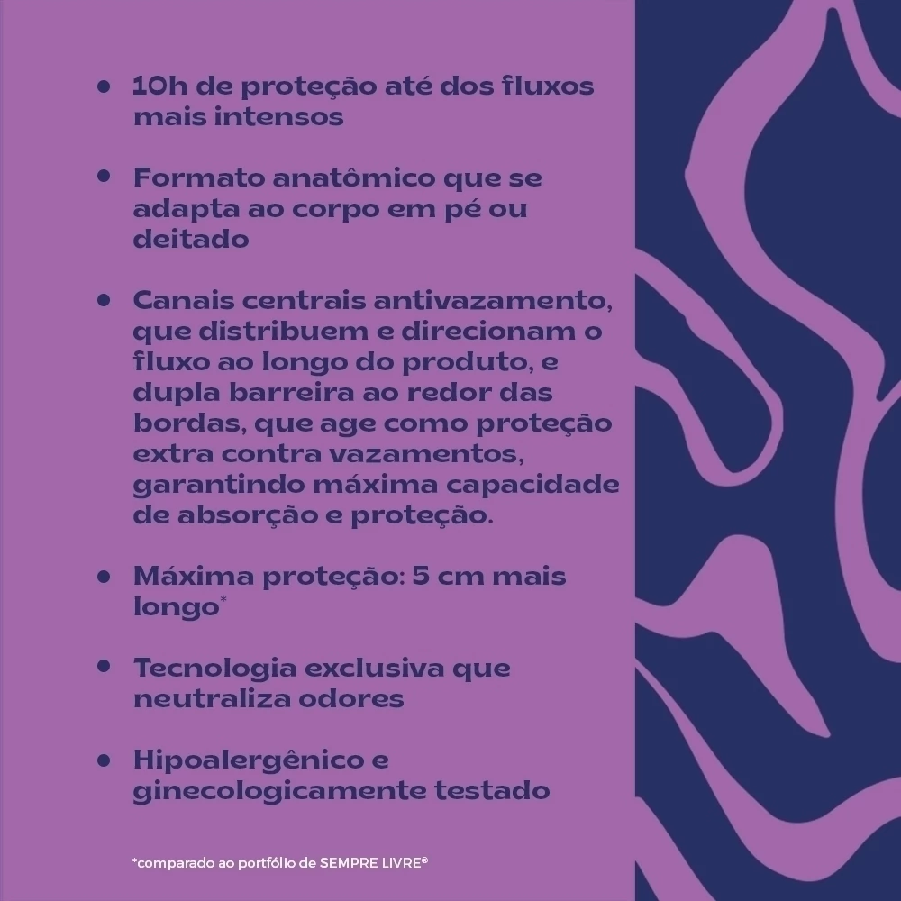 Sempre Livre Adapt Plus Noite e Dia tem capacidade de proteção muito maior, se ajusta à qualquer posição e protege por até 10 horas.