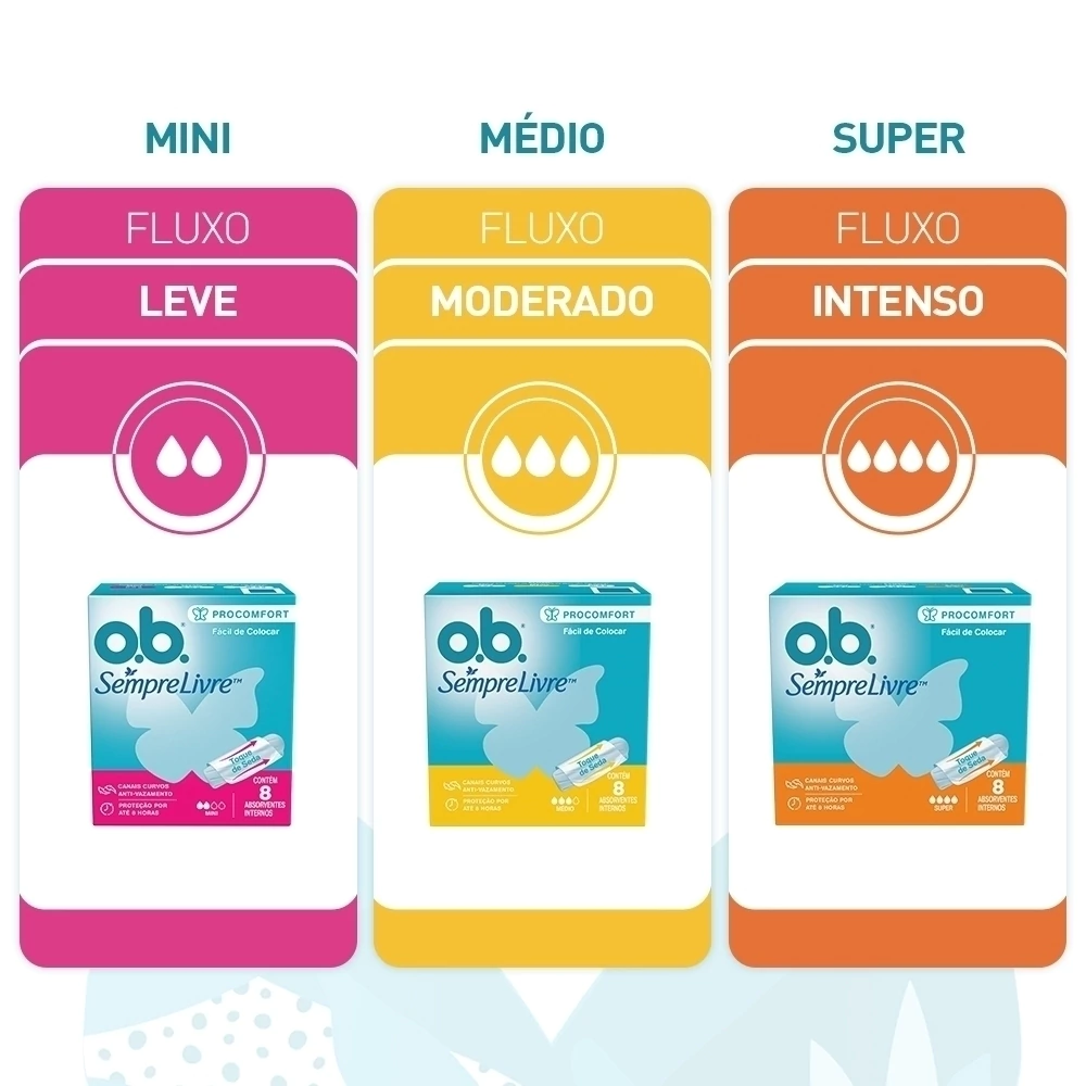 O Absorvente Interno OB procomfort é fácil de usar pois tem formato mais estreito com a ponta mais fina e se expande lateralmente. Adaptando-se ao contorno do seu corpo, evitando vazamentos e oferecendo máxima proteção. Combina com a tecnologia dos canais curvos que absorvem o fluxo para uma proteção segura. Com a exclusiva cobertura silktouch que desliza melhor para uma colocação mais fácil.