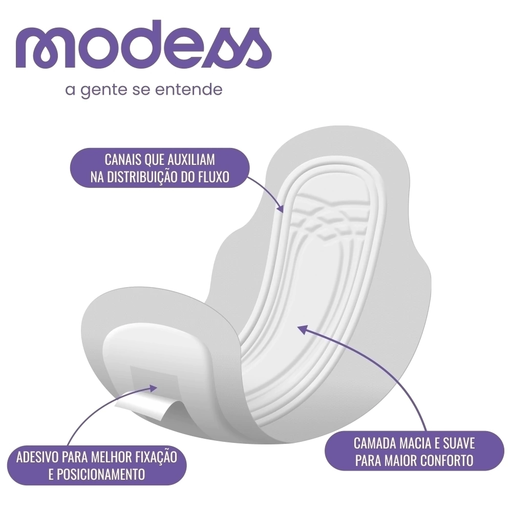 Proteção imbatível para uma noite tranquila! O absorvente feminino de uso noturno Modess é perfeito para fluxos intensos, com cobertura suave e respirável para maior conforto. Além disso, é antibacteriano e antiodor, hipoalergênico e foi testado dermatologicamente, para que você possa se sentir segura e confiante a noite toda. Com um formato anatômico, ele se adapta perfeitamente ao seu corpo para garantir a proteção completa. Não se preocupe mais com vazamentos ou desconforto durante a noite, experimente agora!