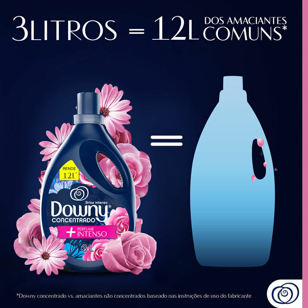 ^ Downy concentrado vs. amaciantes não concentrados baseado nas instruções de uso do fabricante° Baseado em provas realizadas com conjunto de odores representativos. ? Em comparação com Brisa de verão regular ¨ Baseado em dados Nielsen Brasil, para o ano de 2021 * Concentração de perfume depositada e liberada do tecido seco medida por métodos analíticos vs. amaciantes não concentrados o Ótima proteção contra maus odores° e roupas macias para uma aparência impecável o Downy Brisa Intenso é um amaciante concentrado equivalente a 6,4L de amaciante comum^ o Sua fórmula proporciona uma fragrância intensa? e duradoura a cada lavagem o Amaciante Nº1 do Brasil¨ e recomendado pela Electrolux o Para obter o resultado ideal com o amaciante, que deixe roupas macias, fáceis de passar e protegidas de odores° com perfume prolongado, use a quantidade indicada na embalagem