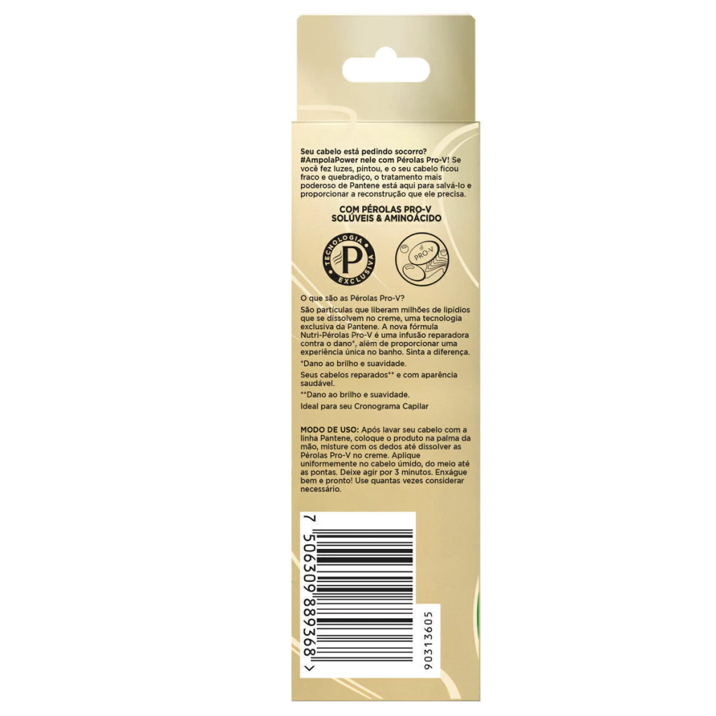 o Contém Pérolas Pro-V solúveis e aminoácidos o Sua fórmula com Pérolas Pro-V possui 3X mais poder de reparação* o As Pérolas Pro-Vitaminas são partículas que liberam milhões de lipídios que se dissolvem no creme, uma tecnologia exclusiva Pantene o Ideal para cabelos danificados o Ideal para o seu cronograma capilar o Contém 1 ampola de 15 ml o *Danos à maciez vs shampoo sem ingredientes condicionadores