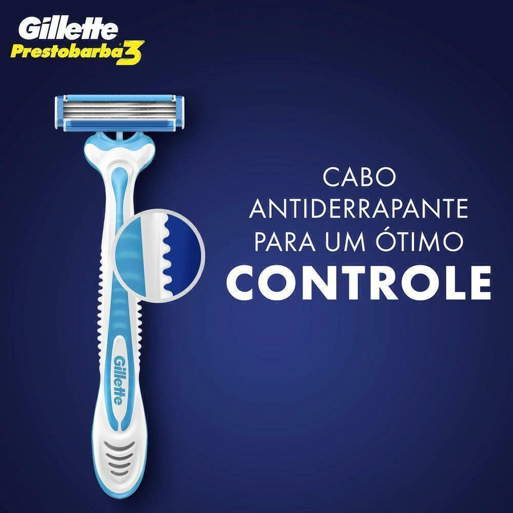 O aparelho de barbear descartável Gillette Prestobarba3 Coolagora com até mais 10 shaves refrescantes com a tecnologia comfortgel. Durante obarbear a água ativa o lubrificante, é estendida, tornando-se uma camadaprotetora entre a pele e as lâminas para um barbear liso e enxuto. Experimente aEspuma de Barbear Prestobarba para um melhor barbear.