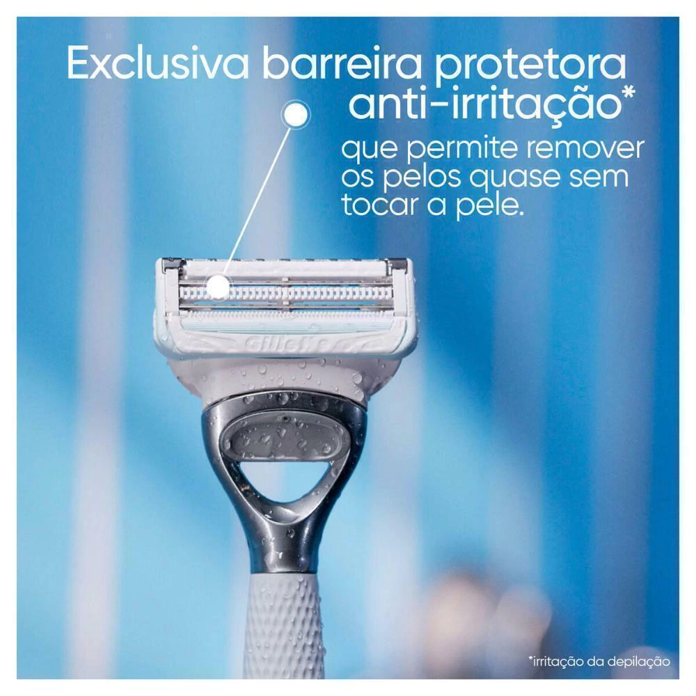 o Exclusiva barreira protetora anti-irritação* que permite remover os pelos quase sem tocar a pele. *irritação da depilação o Depilação suave com as lâminas mais afiadas de Venus o Dupla lubrificação para um deslizar incrível o Dermatologica e ginecologicamente testado o Cabo ergonômico para usar no chuveiro o Inclui lâmina extra na parte detrás, para maior precisão em lugares difíceis de alcançar