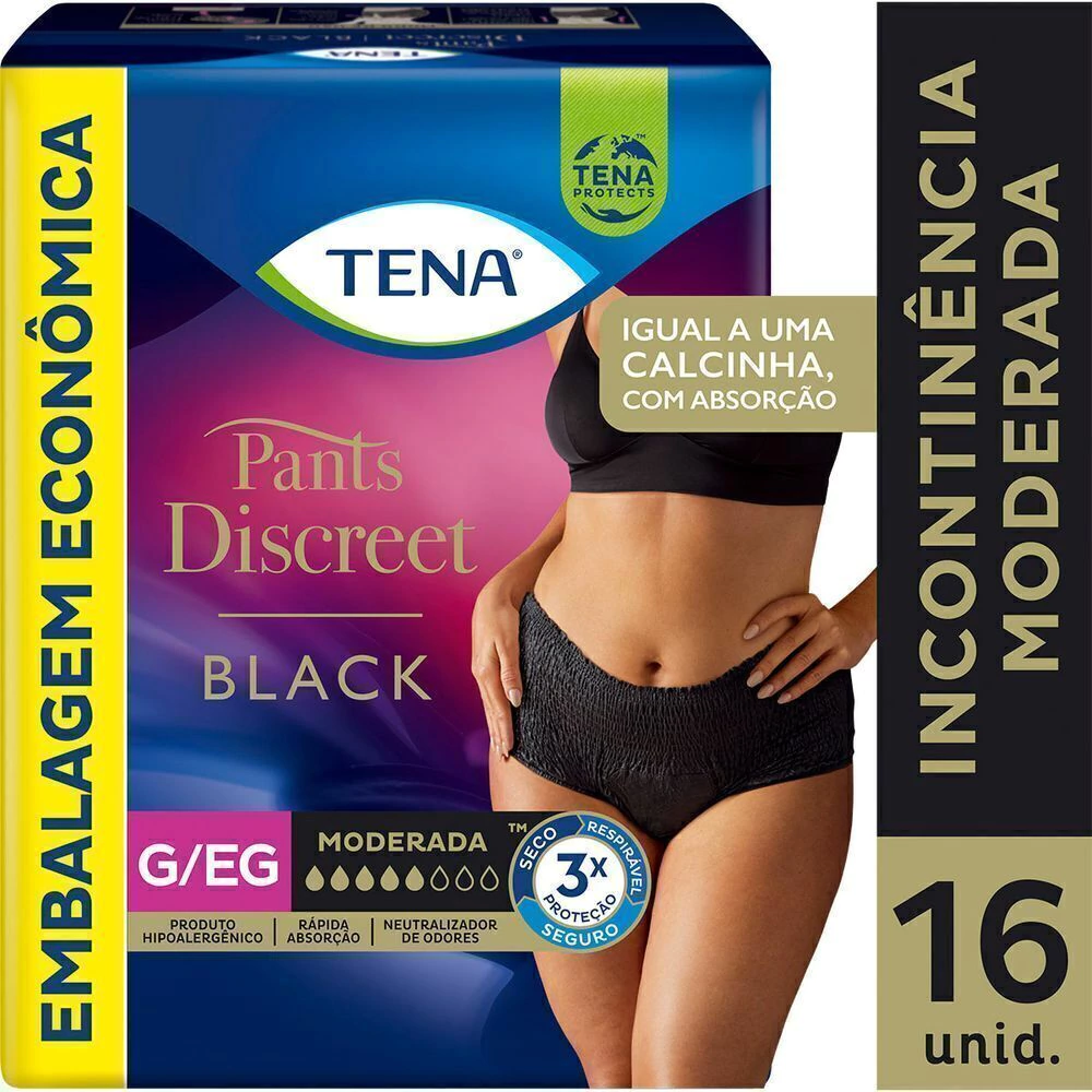 Calcinha Descartável Tena Pants Discreet Preta G/EG com 16un