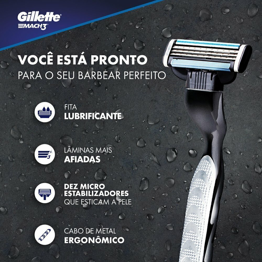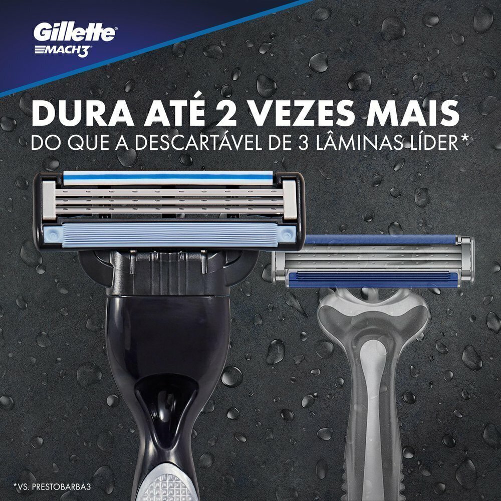 Refil Carga Gillette Mach3 16 Unidades "Os refis do aparelho de barbear Gillette Mach3 tem três lâminas mais resistentes que o aço e se mantêm afiadas por mais tempo (vs. Prestobarba3). Ele é criado para dar a você até 20 barbas por recarga e sua fita lubrificante muda de cor quando o barbear não é mais ótimo, indicando que é hora de substituir a carga por uma nova. A sua cabeça móvel, que sé adapta ao contorno da sua pele, e os seus 10 micro estabilizadores que alisam a pele proporcionam um barbear mais rente. Todos os refis da família MACH3 podem ser usados com qualquer cabo MACH3. o 3 lâminas mais resistentes que o aço e se mantêm afiadas por mais tempo (vs. Prestobarba3)o Criado para dar a você até 20 barbas por recargao Fita lubrificante com indicador, que muda de cor quando o barbear não é mais ótimoo 10 micro estabilizadores que esticam a pele para um barbear mais renteo Todos os aparelhos MACH3 adaptam-se a todas as cargas MACH3 Turbo, Sensitive e Base"- Compre produtos Gillette