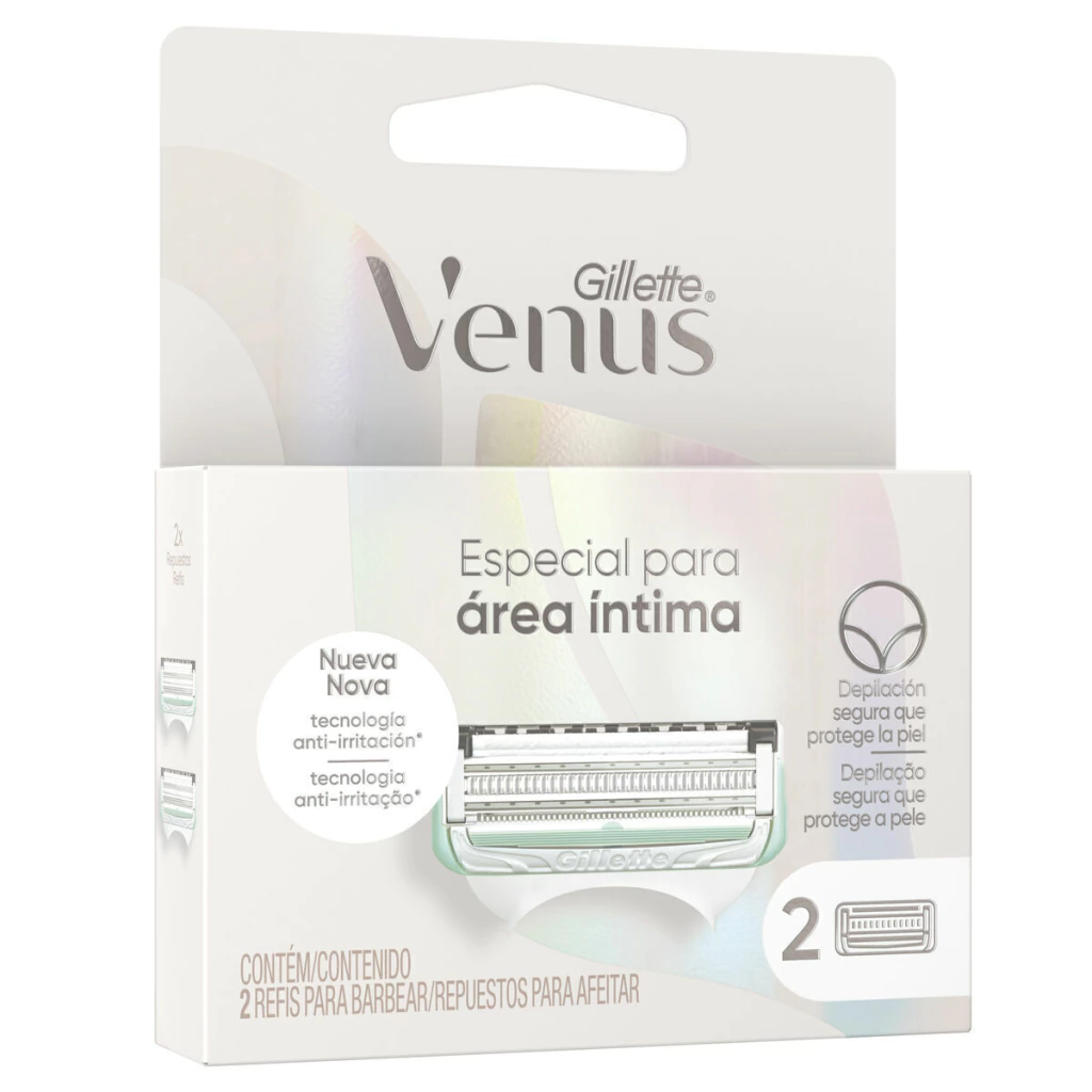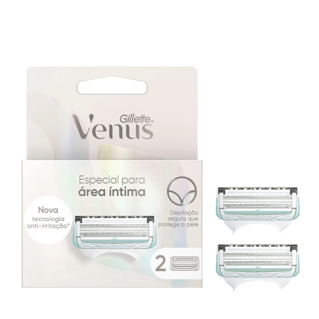 Os refis Gillette Venus Especial para Área Íntima foram desenvolvidos para cuidar e proteger a pele delicada da região da virilha com nossa melhor tecnologia anti-irritação*. Sua exclusiva barreira protetora permite remover os pelos quase sem tocar a pele, ajudando a proteger contra a irritação* e pelos encravados. Além disso, a nova Venus Especial para Área Íntima conta com as lâminas mais afiadas de Venus para uma depilação suave. Os refis incluem uma lâmina extra na parte detrás, para maior precisão nos contornos e lugares difíceis de alcançar e contam com lubrificação dupla para um deslizar incrível. O produto está dermatologica e ginecologicamente testado. Para resultados incríveis, utilize a linha completa Venus Especial para Área Íntima. Refis compatíveis apenas com o aparelho recarregável Venus Especial para área íntima. *irritação da depilação