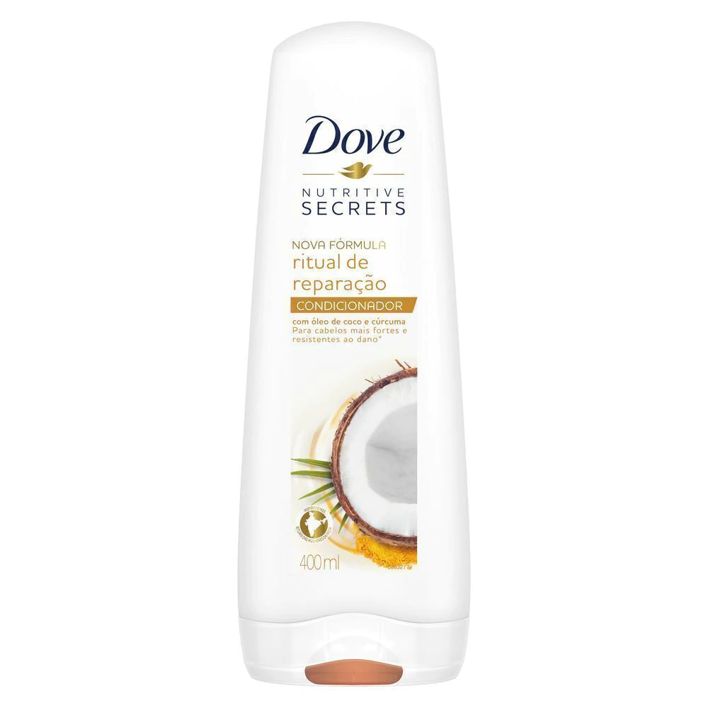 Dove Nutritive Secrets é uma linha de produtos inspirada nos rituais de cuidados com os cabelos praticados pelas mulheres ao redor do mundo, combinando a nutrição de Dove com o poder da natureza. O Condicionador Dove Ritual de Reparação foi inspirado nos Rituais da Índia de tratar os cabelos danificados com óleo de coco e cúrcuma. A linha Dove Ritual de Reparação deixa seus fios muito mais saudáveis e traz de volta a beleza e força aos seus cabelos. Chega de cabelos danificados! O óleo de coco e a cúrcuma são ingredientes muito conhecidos por fazerem parte de rituais de beleza em todo o mundo, pois os dois tem propriedades reparadoras que dão um maior efeito combinado, com o também famoso poder nutritivo de Dove, proporcionando nutrição para cabelo. Dove acredita na real beleza e aposta na diversidade de todas as mulheres.