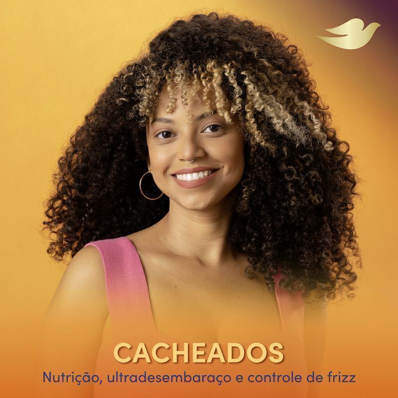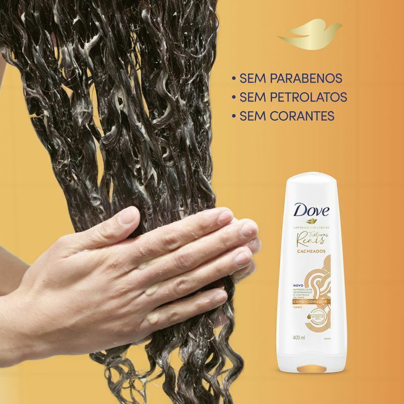 o O Condicionador Dove Texturas Reais Cacheados é feito com ingredientes ativos concentrados que nutrem profundamente os fios, mantendo-os saudáveis e potencializando suas texturas reais o O Condicionador Dove Texturas Reais Cacheados garante nutrição, ultra desembaraço e controle de frizz aos seus cabelos o É formulado com 97% de ingredientes de origem natural**, sem parabenos, petrolatos e corantes, proporcionando ultra desembaraço, nutrição e maciez aos cachos o O Condicionador Dove Cacheados foi desenvolvido com ingredientes ativos concentrados, como o óleo de babosa, que nutre e amacia profundamente os fios dos cabelos para cachos bem definidos o Criado para cabelos cacheados com Curvaturas 3 [ABC]. Para mais textura, após o uso do shampoo, aplique o condicionador sobre todo o comprimento dos fios, até às pontas. Enxague após um minuto o Para potencializar a textura de seus cachos, combine o uso deste condicionador com o Shampoo Dove Texturas Reais Cacheados e a Máscara de Tratamento Texturas Reais em seu cronograma capilar.