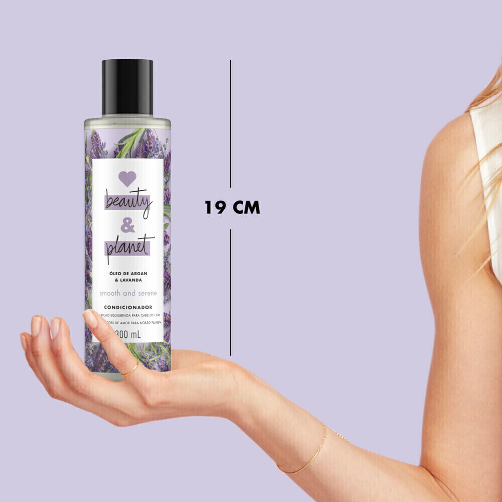 - A linha Smooth & Serene de Love Beauty and Planet, criada com óleo de argan & lavanda, possui o tratamento que você precisa para um cabelo nutrido e sem frizz. - Envolva-se com todo o delicado perfume da lavanda, cultivada de forma consciente e sustentável nos campos franceses. - Esse incrível condicionador com o luxuoso óleo de argan marroquino nutre e traz controle e maciez ao seu cabelo.- A fórmula de Smooth & Serene é vegana e não testada em animais. Além disso, é livre de Parabenos, Silicones e Corantes. - Nossos frascos não são tão transparentes, pois são feitos de plástico 100% reciclado. Eles também são recicláveis, assim causamos menos impacto no meio ambiente. - Nós acreditamos que você não precisa abrir mão de ficar bonita para cuidar do planeta. Por isso, Love Beauty & Planet incentiva suas consumidoras a fazerem pequena ações de amor pelo planeta!