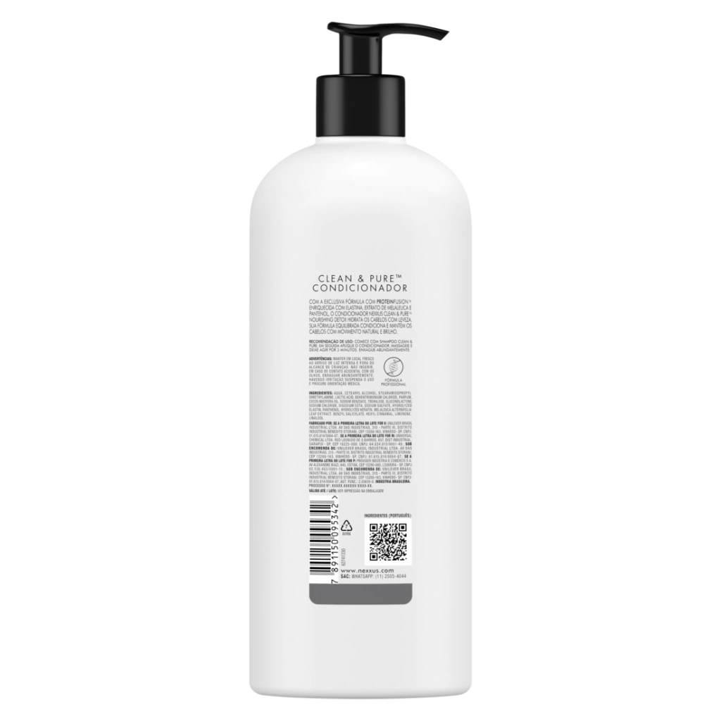 Descubra o poder do Nexxus Clean & Pure, uma linha inovadora que não apenas limpa e faz um detox para os fios, mas também, traz um cuidado completo e saudável, para cabelos com movimento e brilho naturais. A linha foi desenvolvida para um tratamento de salão com a exclusiva tecnologia ProteinFusion™, a fórmula combina Elastina, Extrato de Melaleuca e Pantenol, o shampoo e condicionador Nexxus Clean & Pure proporcionam uma limpeza profunda mantendo os fios hidratados. Este condicionador possui sua fórmula equilibrada que condiciona e mantém os cabelos com movimento natural e brilho. A linha possui a tecnologia ProteinFusion™, blend de proteínas para reparar a estrutura capilar. Produtos com fórmulas leves e hidratantes, que proporcionam uma sensação de leveza e fios hidratados. Este creme hidratante é adequado para todos os tipos de cabelo e desenvolvido para atender às necessidades de qualquer tipo de cabelo. A fórmula é também antirresíduos, ajuda a purificar e realizar um detox nos cabelos removendo oleosidade e resíduos em excesso. Modo de uso: Lave o cabelo com o Shampoo Nexxus Clean & Pure. Aplique o Condicionador Nexxus Clean & Pure no cabelo molhado e aguarde 3 minutos antes de enxaguar completamente. Transforme seu cabelo com nosso tratamento exclusivo, e sinta a diferença desde o primeiro uso. Desperte seus sentidos e dê início a uma jornada de renovação capilar com nosso condicionador revolucionário.