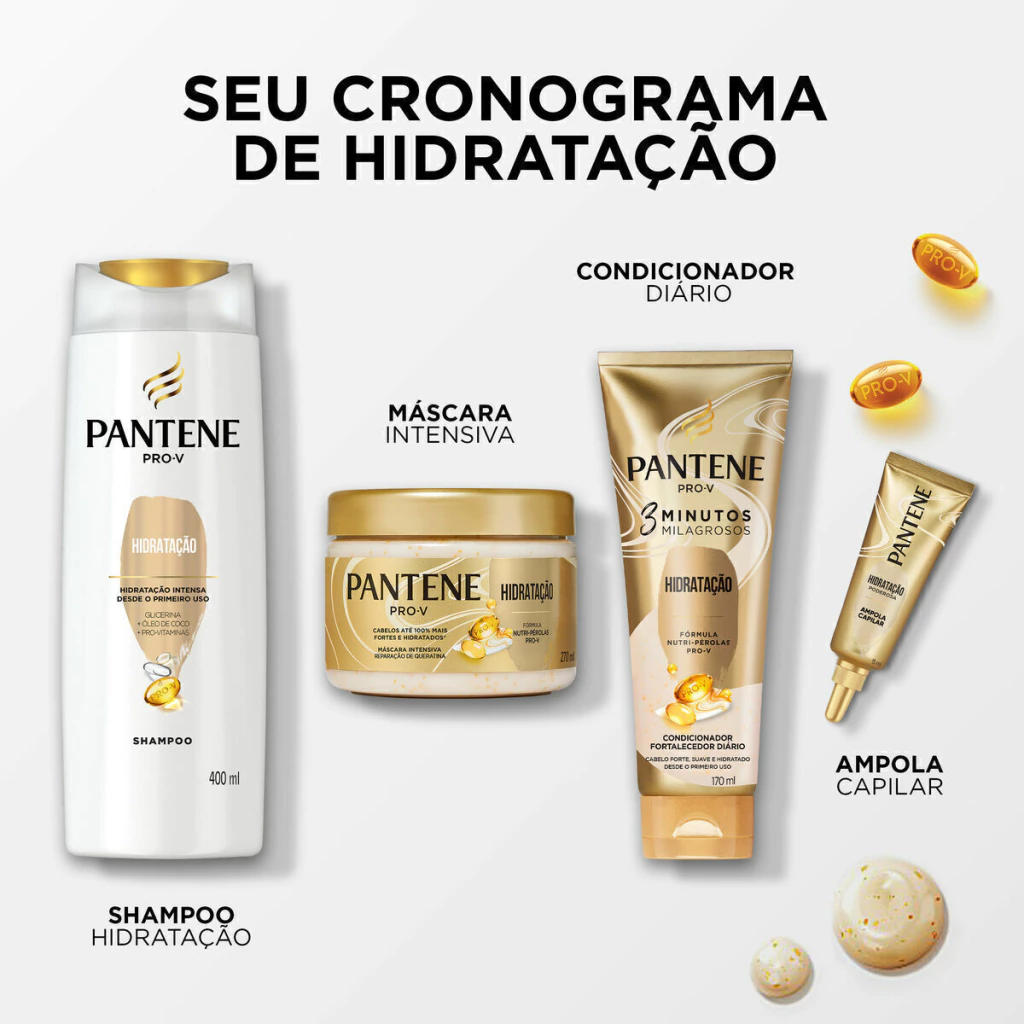Se você sente que os condicionadores comuns não são suficientes para cuidar dos seus cabelos, o condicionador hidratante Pantene sem sal* é ideal para o seu cronograma capilar. O condicionador de uso diário Pantene 3 Minutos Milagrosos Hidratação com Óleo de Coco e Pérolas Pro-Vitaminas solúveis ajuda a devolver a maciez, deixando seu cabelo forte, suave e hidratado desde o primeiro uso. Hidrata cada fio evitando o cabelo ressecado e dando-lhe um brilho luminoso. Repara 100% do dano em 3 minutos*, para uma hidratação capilar profunda. As Pérolas Pro-V são partículas que liberam milhões de lípidos que se dissolvem no creme, uma tecnologia patenteada. Uma experiência única no banho, sinta a diferença e experimente uma transformação nunca antes vista. **Sem adição de NaCl. *Sem adição de NaCl.**Dano à suavidade medido em cabelo com dano químico, térmico e mecânico. SHORT DESCRIPTION:Se você sente que os condicionadores comuns não são suficientes para cuidar dos seus cabelos, o condicionador hidratante Pantene sem sal* é ideal para o seu cronograma capilar.O condicionador de uso diário Pantene 3 Minutos Milagrosos Hidratação com Óleo de Coco e Pérolas Pro-Vitaminas solúveis ajuda a devolver a maciez, deixando seu cabelo forte, suave e hidratado desde o primeiro uso. Hidrata cada fio evitando o cabelo ressecado e dando-lhe um brilho luminoso. Repara 100% do dano em 3 minutos**, para uma hidratação capilar profunda. *Sem adição de NaCl.**Dano à suavidade medido em cabelo com dano químico, térmico e mecânico.