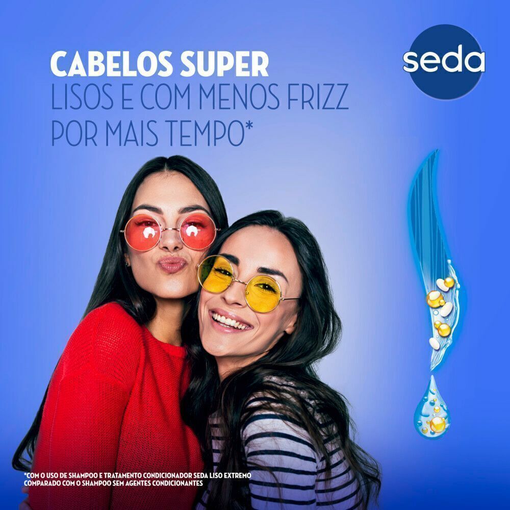 o Fórmula exclusiva com a tecnologia Seladora de Cabelos Lisos. o Tratamento Condicionador Seda com secagem rápida, para menos tempo secando e menos tempo danificando*.*Comparado com shampoo Seda Liso Extremo. o Condicionador anti frizz por mais tempo* *Uso comparado com shampoo sem agentes condicionantes. o Tratamento Condicionador para alinhar o cabelo liso. o Ótimo para cabelos lisos, alisados, desalinhados e com frizz. o O Tratamento Condicionador Seda Liso Extremo secagem rápida 325ml pode ser usado diariamente.