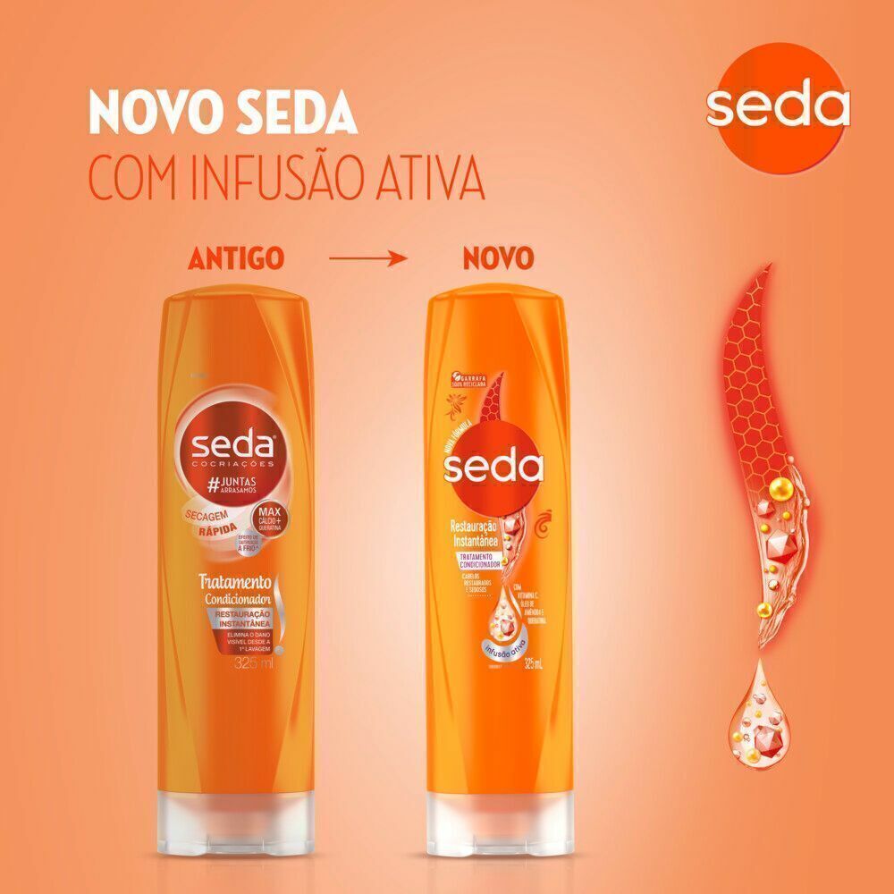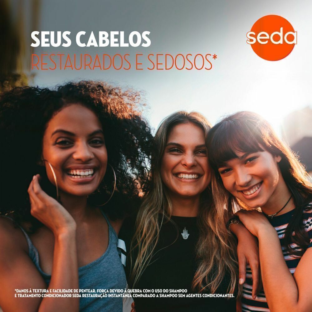 *Comparado com shampoo Seda Restauração Instantânea. ^DANOS À TEXTURA E FACILIDADE DE PENTEAR COM O USO DO SHAMPOO E CONDICIONADOR SEDA RESTAURAÇÃO INSTANTÂNEA.
