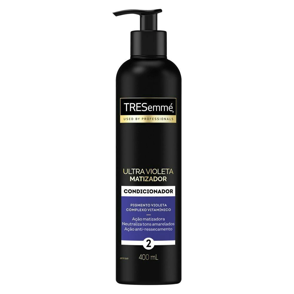 oO Condicionador TRESemmé Utra Violeta Matizador, com pigmento violeta e seu complexo vitamínico, devolve hidratação intensa aos cabelos loiros, platinados ou grisalhos