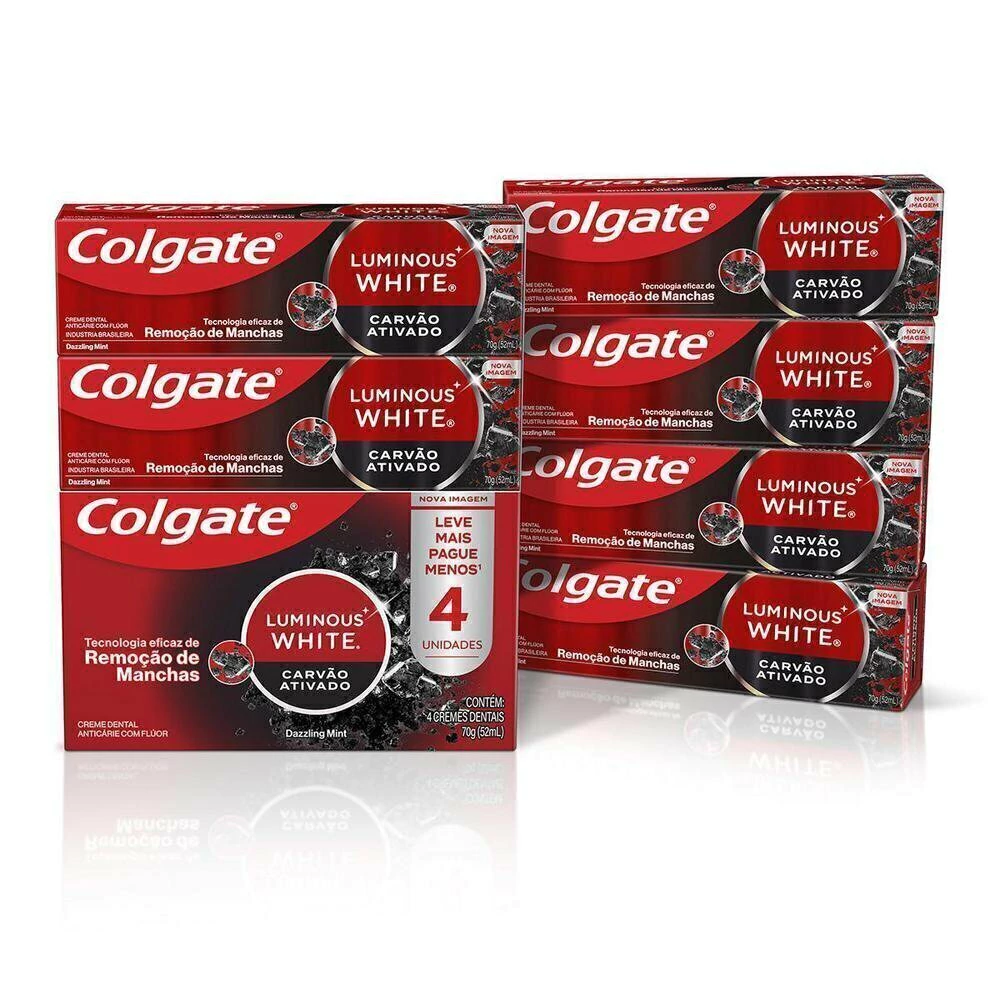 Benefícios para você: ?? O creme dental clareador Colgate Luminous White Carvão Ativado possui uma poderosa tecnologia de remoção de manchas para um sorriso mais branco e deslumbrante. Além disso, o uso contínuo desse creme para clareamento dental ajuda a manter os dentes mais brancos e visivelmente belos. ?? Esse clareador dental é um poderoso removedor de manchas para um sorriso cada vez mais lindo e saudável. ?? Nova fórmula com carvão ativado para um sorriso mais deslumbrante. ?? Esse creme dental para clareamento também proporciona um branqueamento poderoso dos dentes para um sorriso mais branco. ?? O uso contínuo ajuda a manter os dentes mais brancos e visualmente deslumbrantes.