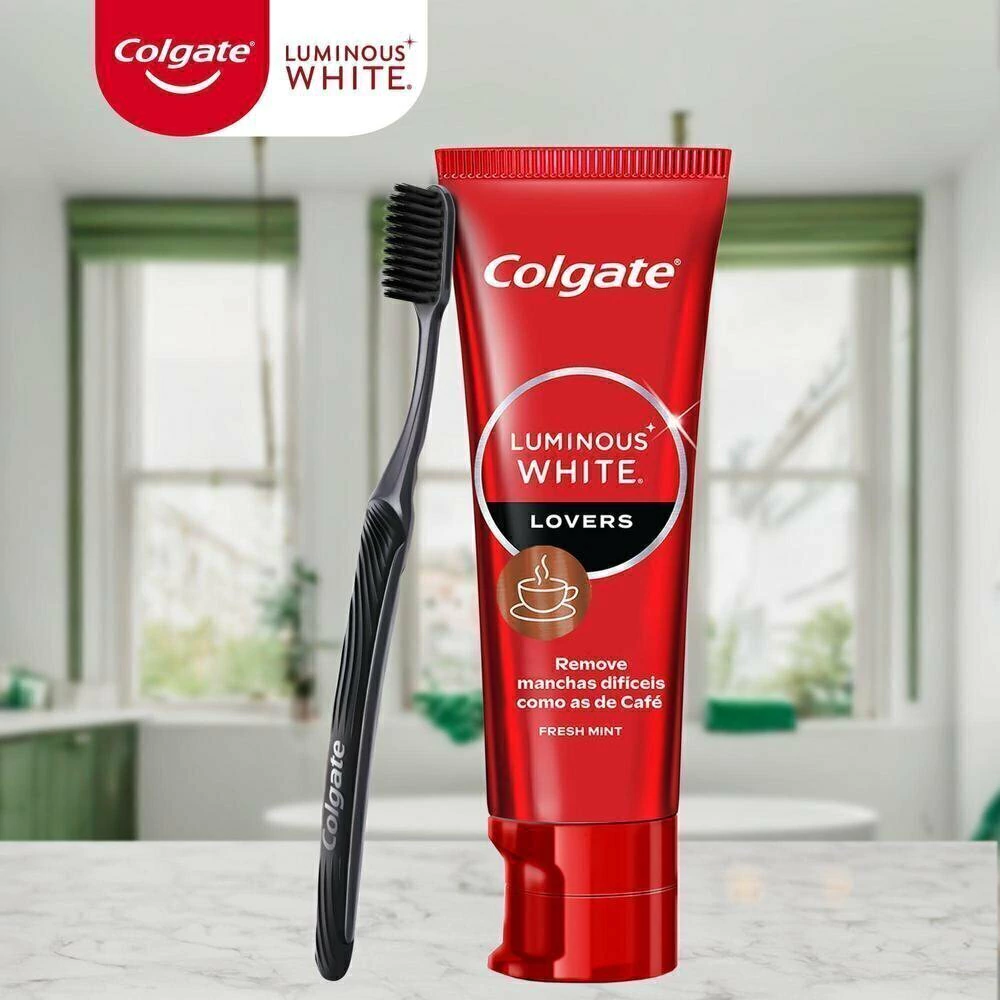 A linha Colgate Luminous White Lovers possui uma tecnologia para clareamento dental avançado desenvolvido para remover manchas nos dentes causadas por café proporcionando um sorriso mais branco e brilhante sem precisar abrir mão dos prazeres do dia a dia.