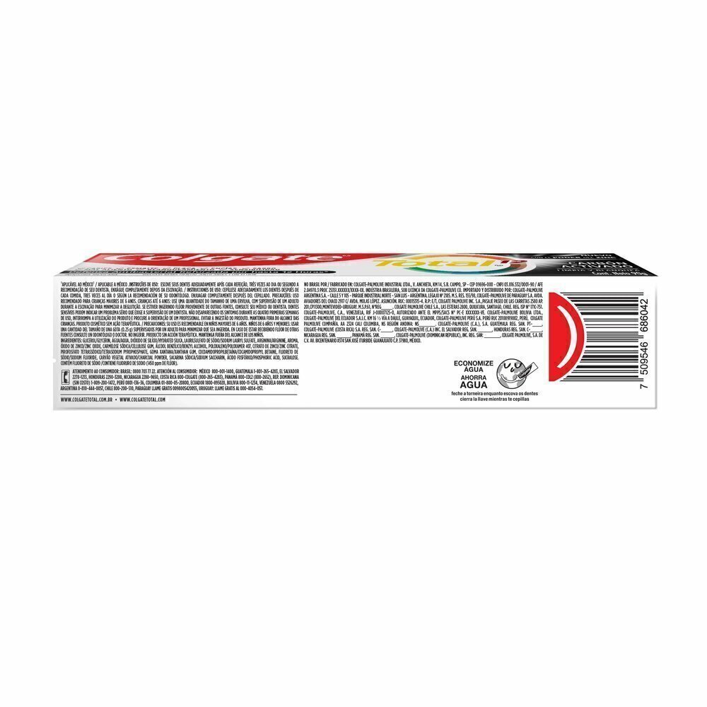 Apenas 20% dos germes na boca estão nos dentes, os 80% restantes estão nas gengivas, língua e bochecha. Colgate Total 12 Carvão Ativado é um creme dental antibacteriano com o poder do Zinco que apoia as defesas naturais da sua boca**, combate germes e bactérias nos dentes, língua, bochechas e gengivas, proporcionando uma limpeza total da boca por 12 horas*, além de um sorriso branco e saudável por mais tempo.