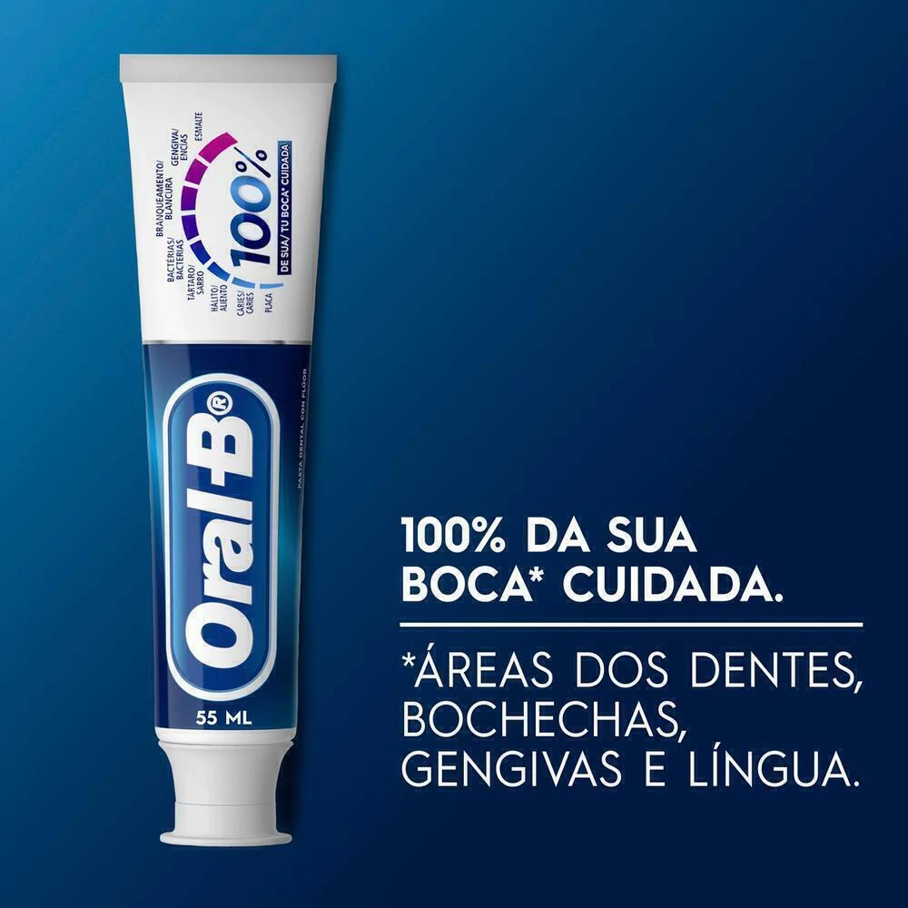 Experimente a Pasta Dental Oral-B 100%, que mantém 100% da sua boca* protegida contra os problemas bucais mais comuns, incluindo áreas dos dentes, bochechas, gengivas e língua. Protege seus dentes, gengivas, língua e bochechas contra problemas como placa bacteriana, mau hálito, tártaro e cáries.