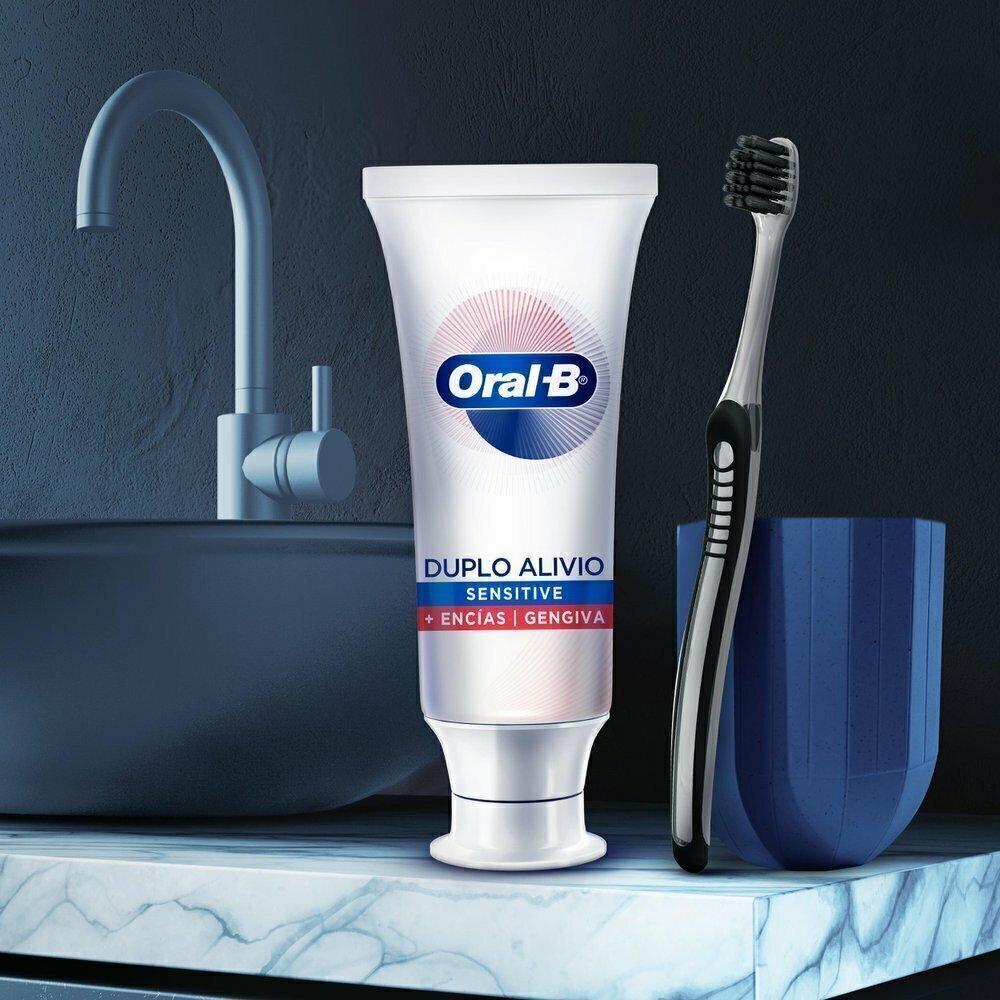 A nova pasta Oral-B alivia a sensibilidade desde o primeiro uso. Com sua tecnologia com dupla ação, ela te ajuda com dentes sensíveis e problemas na gengiva. Essa pasta é clinicamente comprovada e é uma das fórmulas mais avançadas do nosso portfólio. Recomendamos escovar os dentes pelo menos três vezes ao dia e complementar sua rotina com os produtos Oral-B