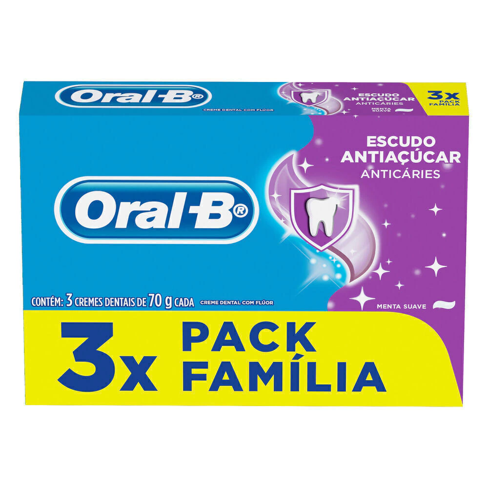 Creme Dental Oral-B Escudo Antiaçúcar: Ajuda a proteger contra ácidos que danificam os dentes. Proteja seus dentes contra ácidos de bactérias que podem danificar o esmalte: O novo creme Oral-B Escudo Antiaçúcar protege e fortalece os dentes. Sua fórmula contém partículas minerais que são absorvidas pelo dente e formam um escudo contra ácidos das bactérias que danificam os dentes. Oral-B Escudo Antiaçúcar oferece: Proteção anticáries, Limpeza Profunda e Escudo Antiaçúcar. Para um cuidado bucal completo, use toda a família de produtos Oral-B e consulte um dentista regularmente.