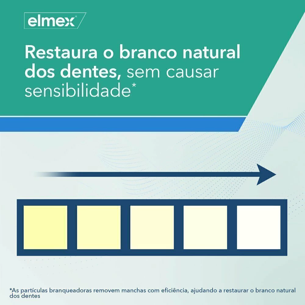 Suas partículas branqueadoras, por sua vez, removem manchas com eficácia, ajudando a restaurar o branco natural dos dentes - polimento seguro da superfície dos dentes sem causar sensibilidade.