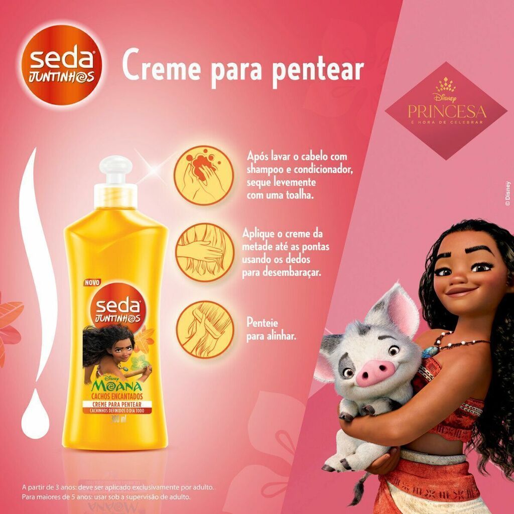 Novo Seda Juntinhos traz para a hora do banho as aventuras das personagens mais amadas pelas crianças. É diversão para os pequenos e cuidado com seus cabelos, já que o Creme para Pentear Seda Juntinhos Cachos Encantados hidrata, ajuda a tirar os nós e deixa os cachinhos definidos o dia todo. Com uma fragrância com um cheiro adocicado que brinca com as flores e as frutas envoltas em uma cremosa baunilha, deixando os cachos perfeitos com um cheirinho delicioso! O Creme de Pentear para cabelos cacheados Seda Juntinhos Cachos Encantados é indicado para ter cachos definidos o dia todo. Nossa linha Seda Juntinhos é dermatologicamente testada e é indicada para crianças com mais de 3 anos. Como usar: após lavar o cabelo com o shampoo e condicionador, seque levemente com uma toalha e aplique o creme da metade até as pontas, usando os dedos para ajudar a desembaraçar e penteie para alinhar. Fazemos produtos para cabelos que gostam de experimentar, explorar, sonhar e descobrir. Vamos ser sinceras: nos dias de hoje temos mais possibilidades do que nunca. Cada segundo é uma oportunidade de viver ao máximo. *Inclusão de pelo menos 39% de plástico reciclado.
