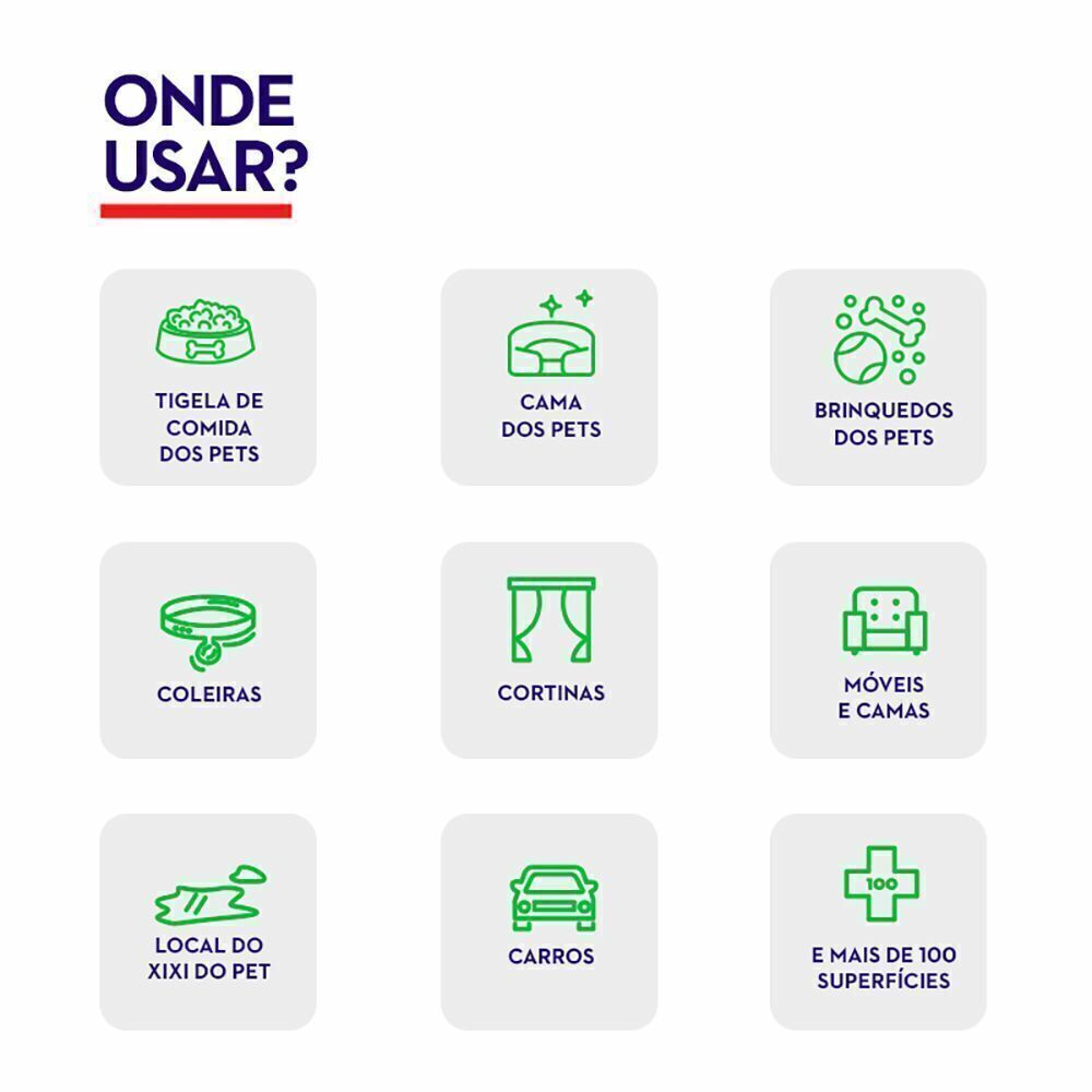 Mata os vírus e bactérias*³ presentes nas superfíceis que causam a Cinomose, a Gripe Canina, a Tosse Canina e Calicivirose Felina.