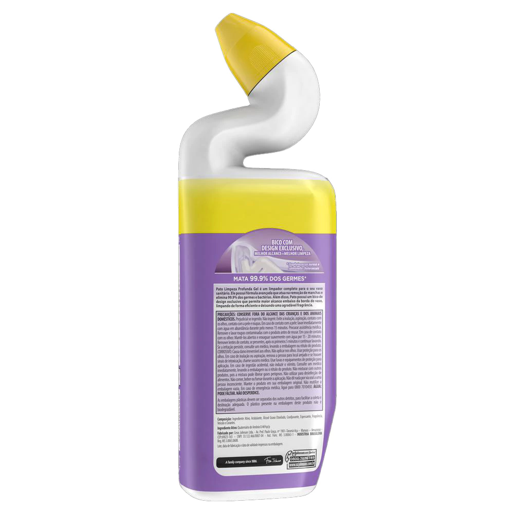 Pato Limpeza Profunda Gel é um limpador completo para o seu vaso sanitário. Ele possui fórmula avançada que atua na remoção de manchas e elimina 99,9% dos germes - bactérias. Além disso, Pato possui um bico de design exclusivo que permite maior alcance embaixo da borda do vaso, limpando de forma eficiente e deixando uma agradável fragrância.