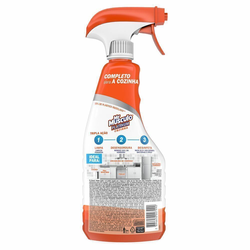 Músculo Platinum Cozinha é um produto completo para a limpeza da cozinha pois tem Tripla Ação: Limpa, Desengordura e Desinfeta. Só ele Limpa Poderosamente, Remove 100% da Gordura e Mata 99,9% dos Germes, Bactérias e Vírus. Ao contrário do detergente, sabão para louças, ou água sanitária, não é necessário enxaguar após o uso. Você pode aplicar o produto diretamente nas superfícies indicadas e, depois, remover o produto com um pano. Muito prático para ser usado na limpeza do dia a dia, deixando livre de preocupações.
