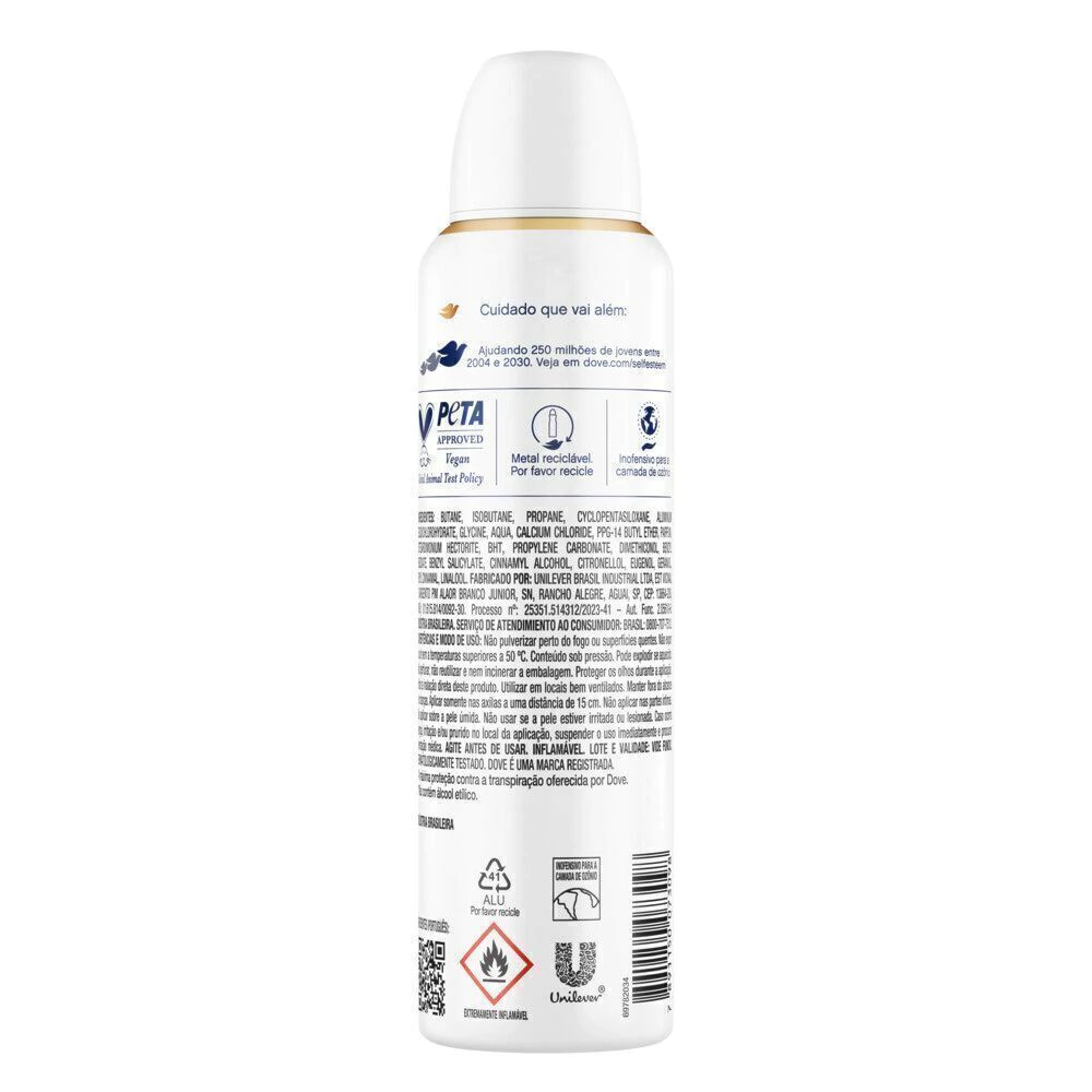 O Desodorante Antitranspirante Aerosol Dove Clinical Original Clean cuida e protege as axilas por 96 horas contra suor e mau odor, mantendo as axilas secas o dia todo. Formulado com 1/4 de creme hidratante, este antitranspirante ajuda a manter a hidratação da pele das axilas, deixando-as suaves e macias. O desodorante Dove Original Clean oferece máxima proteção* contra o suor excessivo. Este desodorante aerosol, além de proteger contra suor e mau odor, possui uma fragrância delicada Original Clean, para uma sensação de limpeza e frescor. O desodorante clinical Dove Original Clean é a combinação perfeita de proteção, beleza e cuidado. Dove proporciona proteção eficaz e cuidado para a pele das axilas, para que você possa se libertar de qualquer desconforto e se sentir confiante o dia todo. Para uma melhor proteção contra marcas de suor e irritação da pele, siga estas dicas: após o banho, garanta que as axilas estejam bem secas; para obter o máximo do seu Desodorante Antitranspirante Aerosol Dove Clinical Original Clean, agite a embalagem para ativar os ingredientes; segure-a voltada para cima a 15 cm das suas axilas e aplique um jato de dois segundos em cada uma. Dove é certificada Cruelty-Free pela PETA, sendo assim, não realizamos e nem realizaremos testes em animais em nenhum lugar do mundo. *Maior proteção contra transpiração oferecida por Dove.