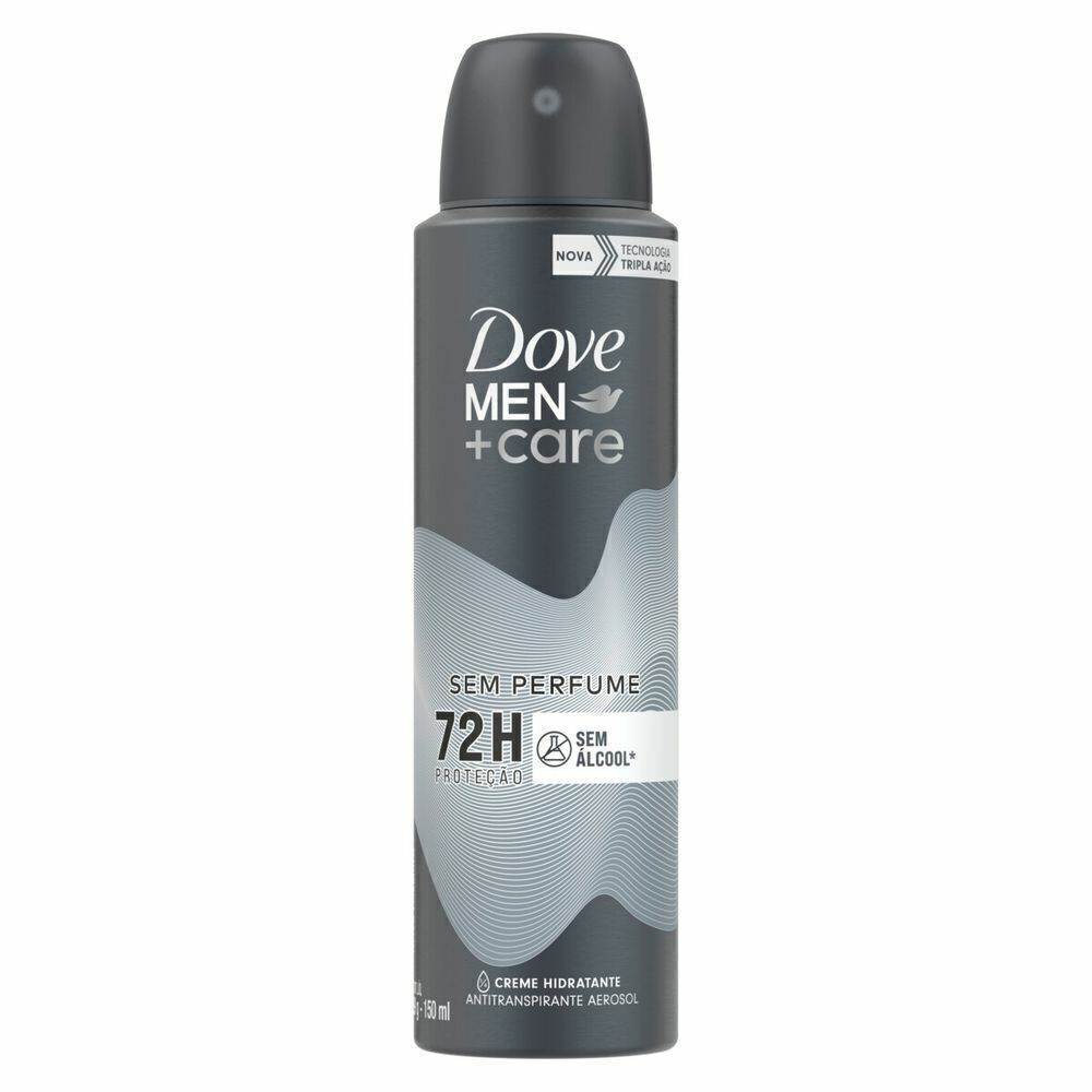 o O Desodorante Aerosol Dove Men+Care Sem Perfume é adequado para pele sensível e protege contra o suor e mau odor o Desodorante aerosol projetado para 72h de proteção contra o mau odor o Desodorante aerosol sem perfume, sem álcool* e com tecnologia Tripla Ação que ajuda a proteger a pele, reduzindo o risco de irritações o Desenvolvido para ser um desodorante antitranspirante de uso diário para homens, ajudando você a se sentir revigorado, confortável e confiante o dia todo o Desodorante aerosol para homens com 1/4 de creme hidratante que é forte contra o mau odor e suave na pele o Desodorante ideal para homens que, além de hidratar a pele e ser sem perfume, a mantém seca o dia todo