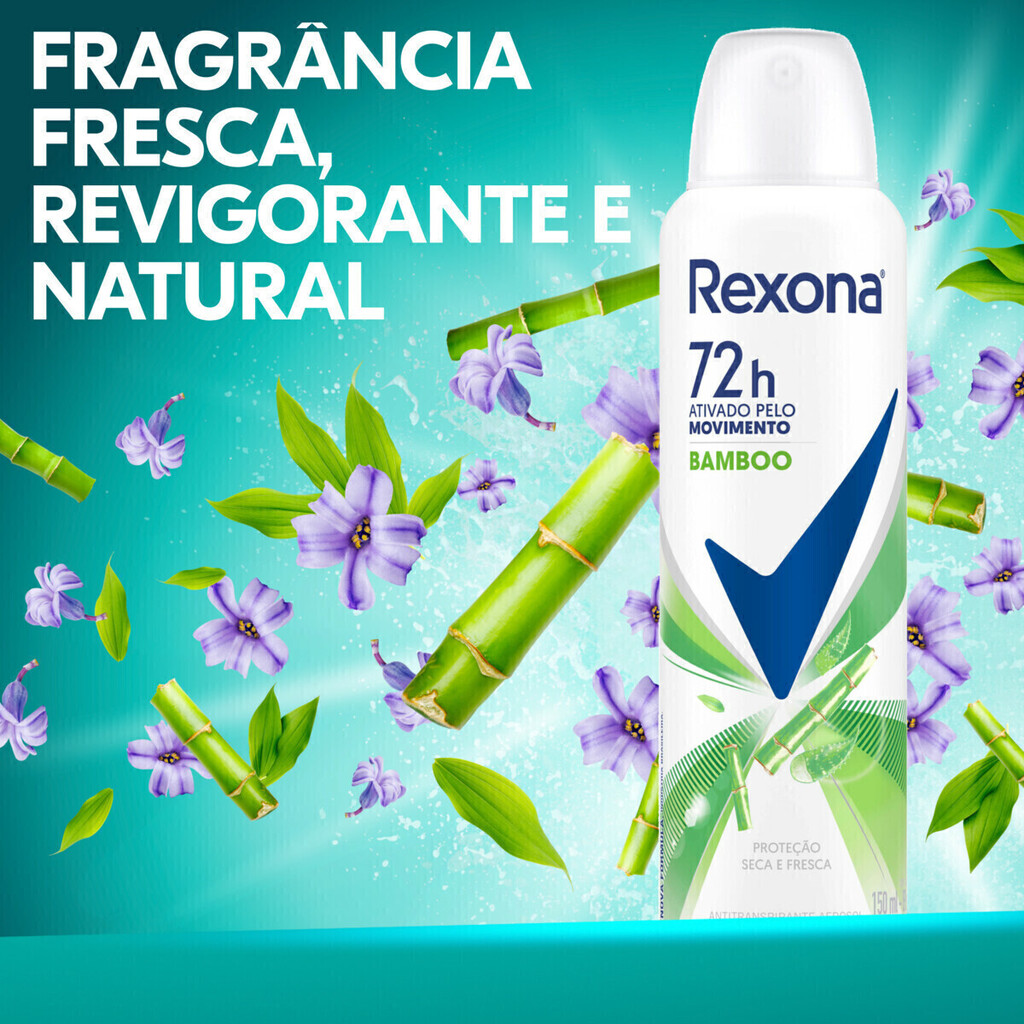 Com o registro de 16 patentes e mais de 300 testes técnicos, está comprovado que essa nova tecnologia antitranspirante entrega um nível de proteção contra o suor como nenhuma outra proposta regular já entregou antes. A nova e exclusiva fórmula de Rexona Bamboo trabalha com um sistema de partículas menores e mais estáveis que formam uma barreira protetora mais resistente e duradoura.