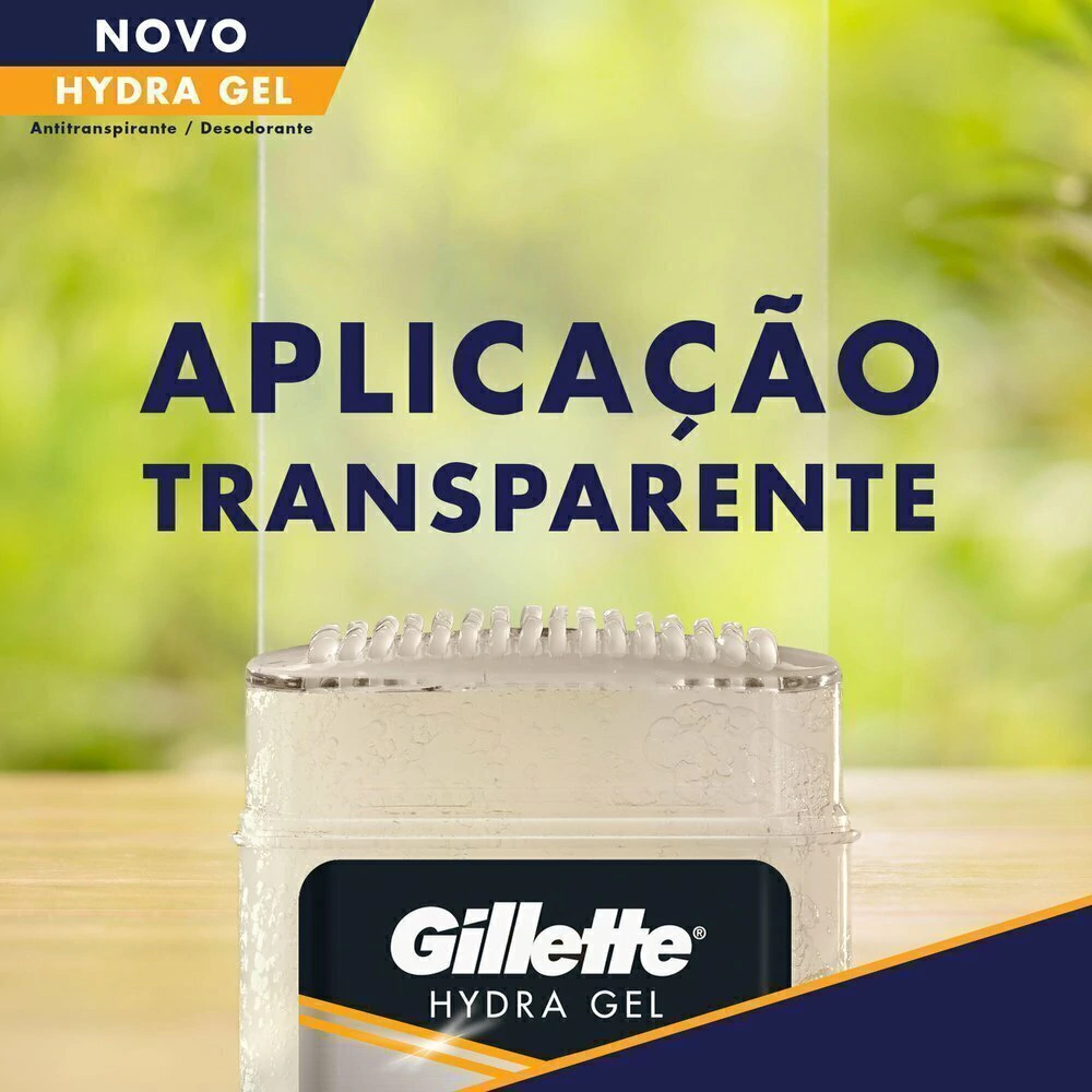 Desodorante Antitranspirante Gillette Hydra Gel Vitamina E 82gA Gillette apresenta seu novo antitranspirante em Géis, Hydra Gel. Sua fórmula não contém álcool etílico, o que ajuda a proteger a pele contrairritações. A fórmula também é hidratante e refrescante, contém Vitamina E e é dermatologicamente testada, proporcionando 48h de proteção invisível contra o suor e mal cheiro. Tem um aroma super agradável e secagem rápida, sem manchas brancas na aplicação. Use Gillette Hydra Gel pela manhã antes de começar sua rotina diária - Use 3 voltas por axila e espere o produto secar antes de vestir-se para ficar protegido durante todo o dia. Experimente o novo Gillette Hydra Gel, você irá se surpreender pois é eficaz contra o suor e o mau cheiro e também é suave para a sua pele. o Aplicação transparenteo Não mancha roupaso Dermatologicamente testadoo 48 horas de proteção contra suoro 48 horas de proteção contra mau cheiro* Compre produtos Gillette
