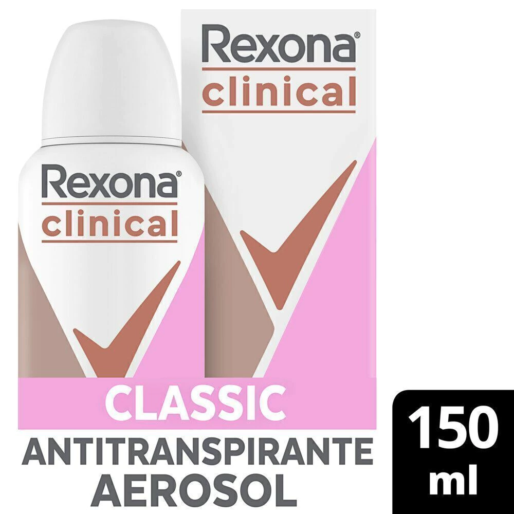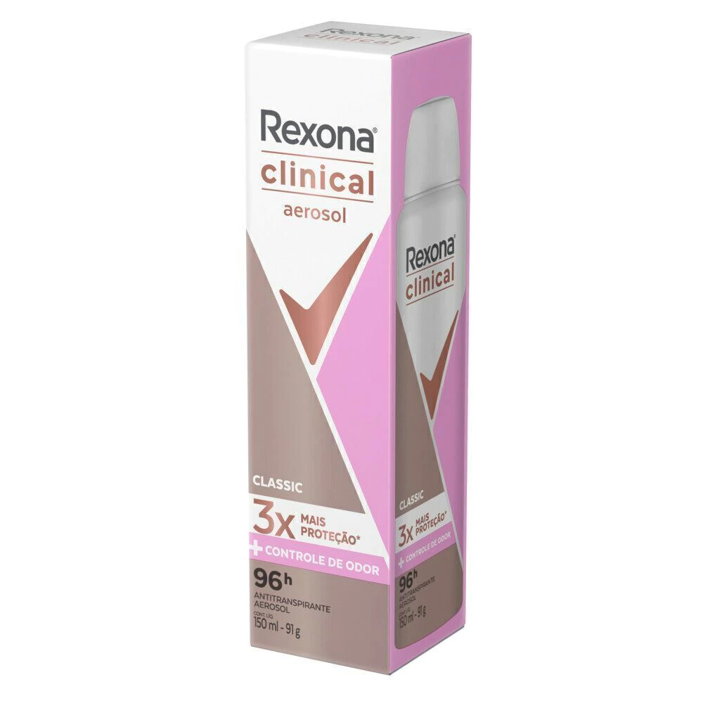 oO Antitranspirante Rexona Clinical Classic garante 96 horas de proteção contra suor e mau odor oEsse desodorante antitranspirante protege 3x mais contra a transpiração excessiva e odor corporal que um antitranspirante comum oO Desodorante Rexona é um aerosol de alta performance com secagem rápida que a protege todos os dias oA fórmula de Rexona Clinical garante máxima proteção e não deixa manchas nem marcas em suas roupas oDesodorante aerosol com uma textura leve e uma fragrância fresca, fácil de aplicar, para que se sinta sempre seca e limpa oRexona Clinical Classic está disponível no formato desodorante em creme ou aerosol