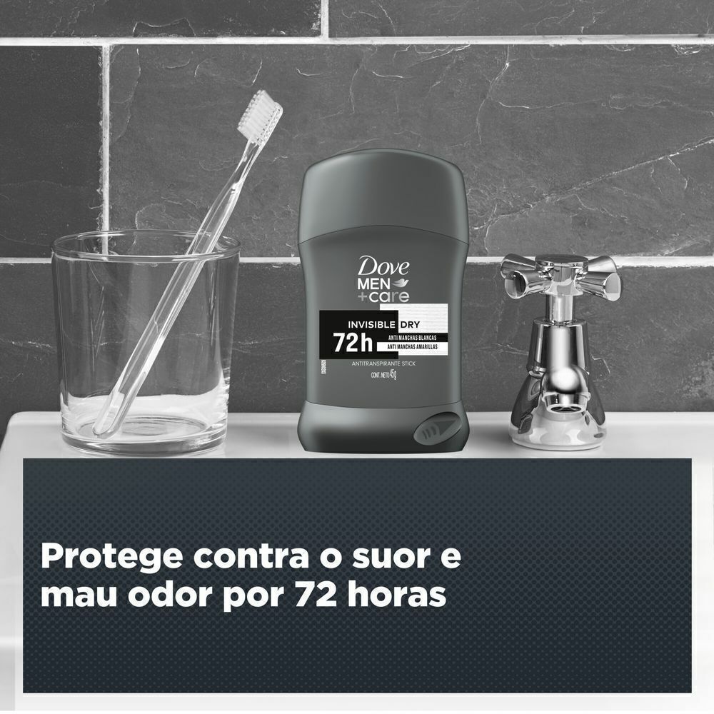 Experimente o Desodorante Antitranspirante Stick Dove Men+Care Invisible Dry que oferece proteção avançada contra o suor e mau odor, aliada a uma tecnologia antimanchas brancas e amarelas em suas roupas. Este desodorante stick combate o suor e o mau odor por até 72 horas, com uma aplicação seca. Com ¼ de creme hidratante e vitamina E, ele cuida, protege e repara a pele das axilas evitando irritação. Possui uma fórmula sem álcool e uma fragrância suave. Este desodorante masculino é potente contra o suor, mas não irrita a sua pele. Mantenha-se seco e evite manchas brancas e amarelas com o Desodorante Antitranspirante Stick Dove Men+Care Invisible Dry. Dove Men+Care tem o que você precisa para se sentir sempre seguro e com uma agradável sensação de frescor que dura o dia inteiro, além de se sentir protegido mesmo com um produto que não irrita a pele. Dove Men+Care celebra uma nova definição de força masculina, em que o cuidado com o bem-estar do seu corpo é o centro de tudo. Dove Men+Care Invisible Dry é simples e fácil de usar, basta deslizar suavemente na axila de modo a cobrir toda a região com uma camada fina e uniforme do produto. Aplicar somente nas axilas. Dove é certificada Cruelty-Free pela PETA, sendo assim, não realizamos e nem realizaremos testes em animais em nenhum lugar do mundo.