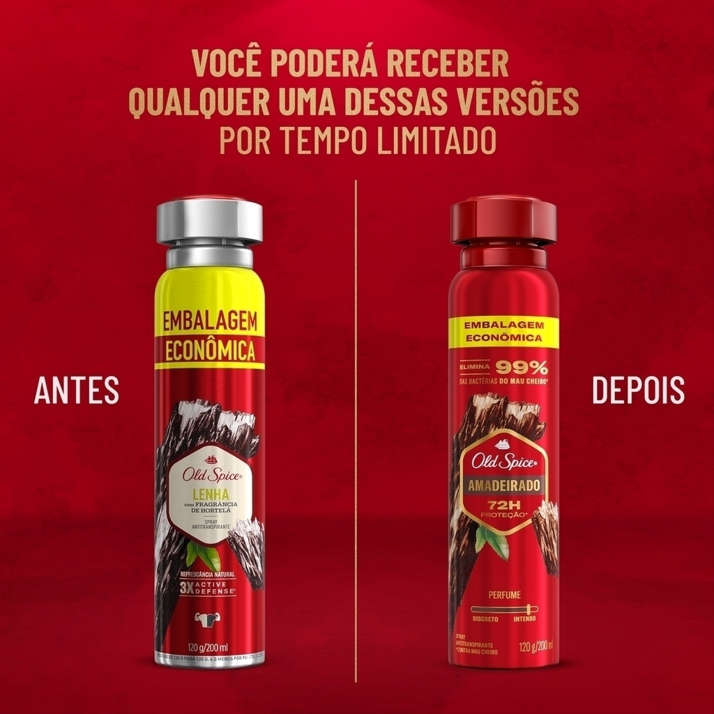 Descubra o desodorante antitranspirante em spray Old Spice Amadeirado! Sinta-se mais confiante e protegido contra o suor contra e o mau cheiro, com sua incrível fragrância amadeirada com menta e especiarias. E ainda, garanta o menor preço por ML de Old Spice.**Com base em preço por ML para a embalagem de 150ml em comparação a embalagem de 200ml.