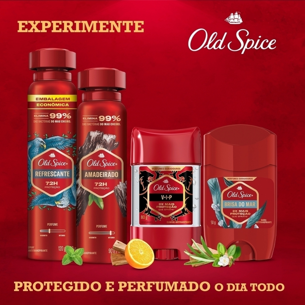 o 2x mais proteção que sprays**Vs. Old Spice Spray o Perfume duradouro o Aroma refrescante com notas de sândalo e frutas vermelhas o Você longe do cheiro de cecê ou suor o Dura até 40 días****Com base na instruçao de uso para 2g por día