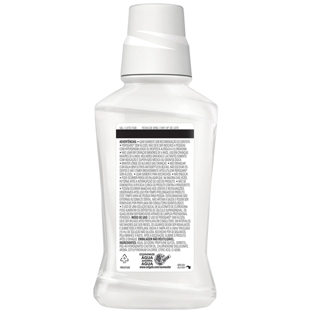 Colgate® PerioGard é uma solução bucal antibacteriana com ação comprovadamente segura na eliminação dos germes que causam a gengivite e a progressão de doenças periodontais. Uso recomendado por no máximo 21 dias. Sabor extra mint. Elimina os germes que causam gengivite, placa bacteriana e mau hálitoRecomendado o uso após procedimentos odontológicosPermanece ativo por até 8 horas combatendo as bactérias salivaresSem álcoolSabor: Extra mintUso recomendado por no máximo 21 dias