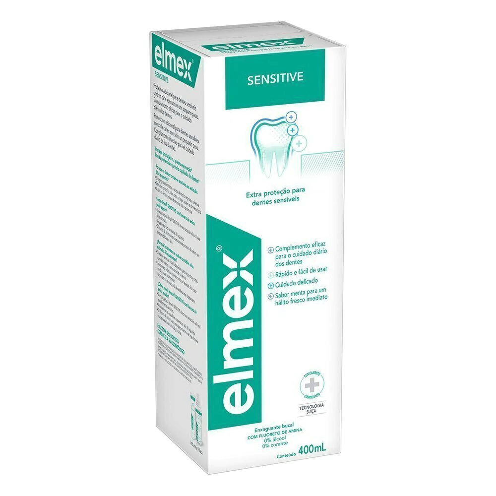 O Enxaguante Bucal Elmex Sensitive possui fórmula sem álcool e corantes, com fluoreto de Amina, que constrói uma camada protetora e duradoura para evitar a sensibilidade e a cárie. Tecnologia Suíça, clinicamente comprovado.