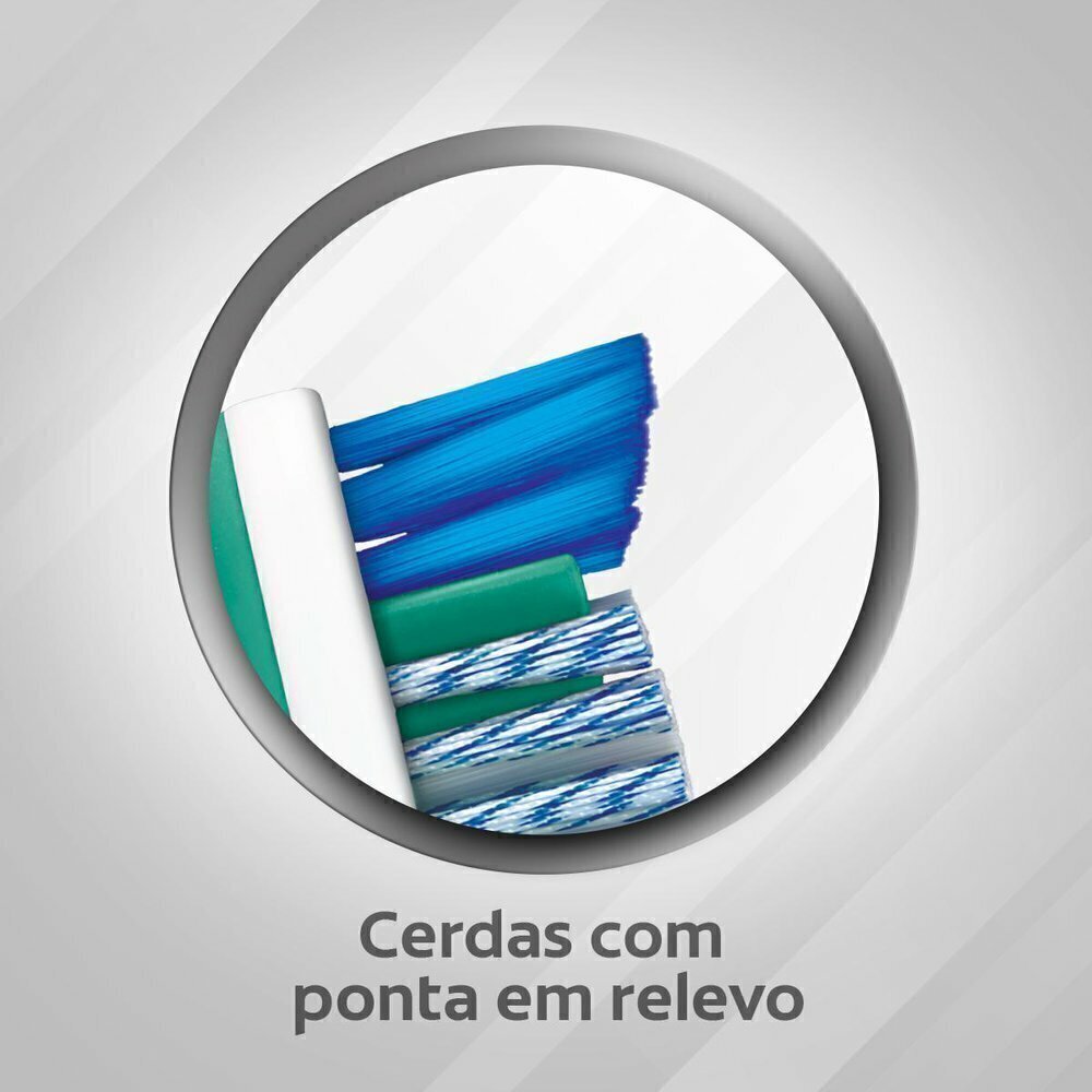 Possui ponta limpadora para alcançar e limpar a placa bacteriana nos dentes superiores