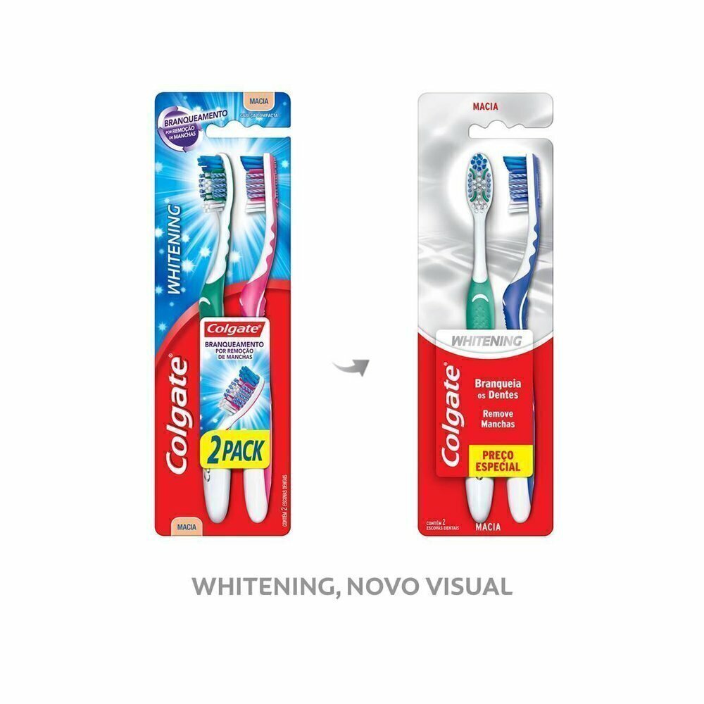 A Escova de dente Colgate® Whitening ajuda na remoção de manchas deixando os dentes mais brancos.