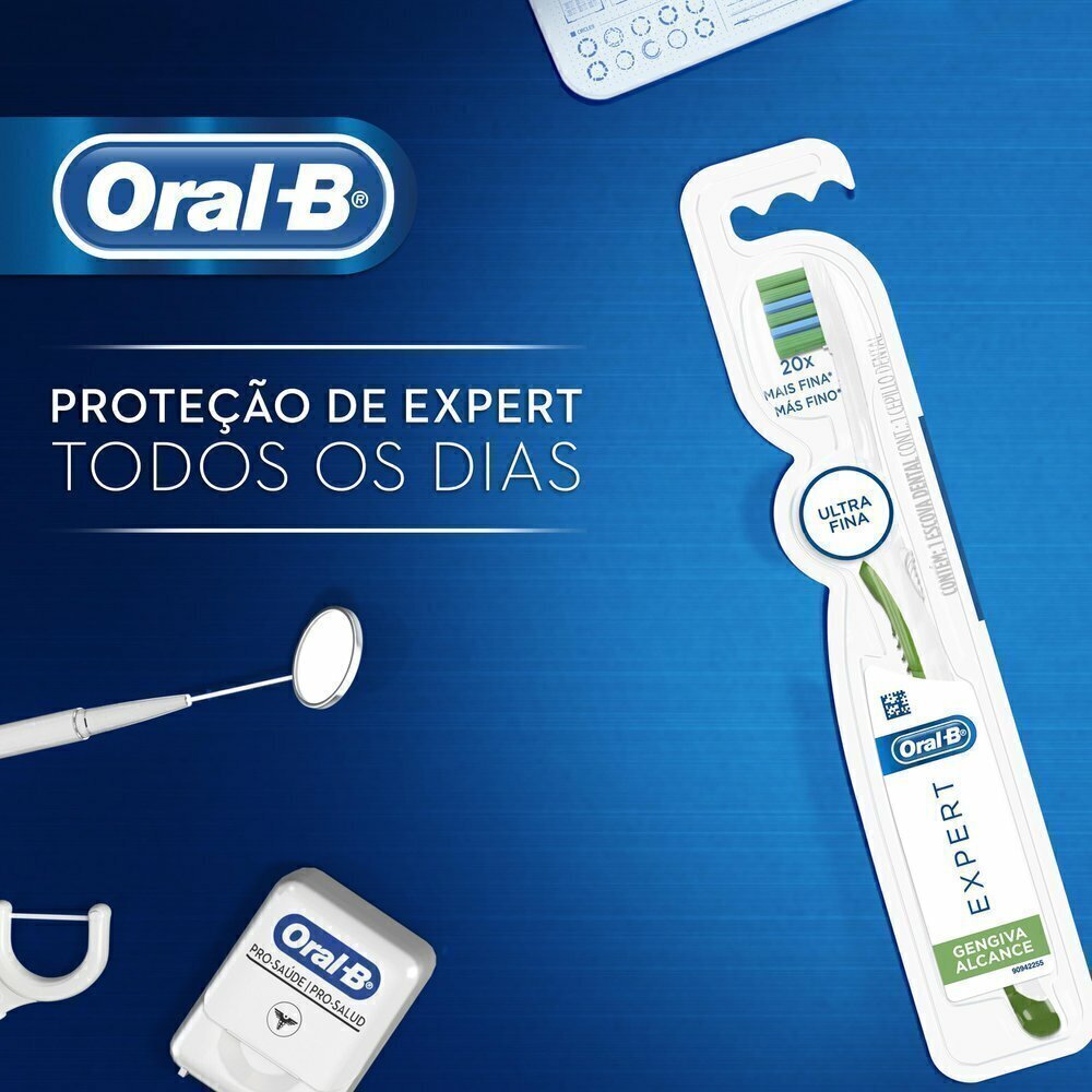 Escova Dental Oral-B Expert Gengiva Alcance Com cerdas 20x mais finas e uma cabeça compacta, essa escova ajuda a limpar entre os dentes e as gengivas. Além disso, apresenta uma tecnologia em suas cerdas, que muda de cor para indicar que é hora de trocar sua escova. Formulada com base na recomendação dos dentistas de escovação pelo menos três vezes ao dia, e de troca da escova a cada 3 meses. o Proteção de expert todos os diaso Expert gengiva alcance o Cerdas 20x mais finaso Cerda que indicam a hora de trocaro Ultra fino- Compre produtos Oral B
