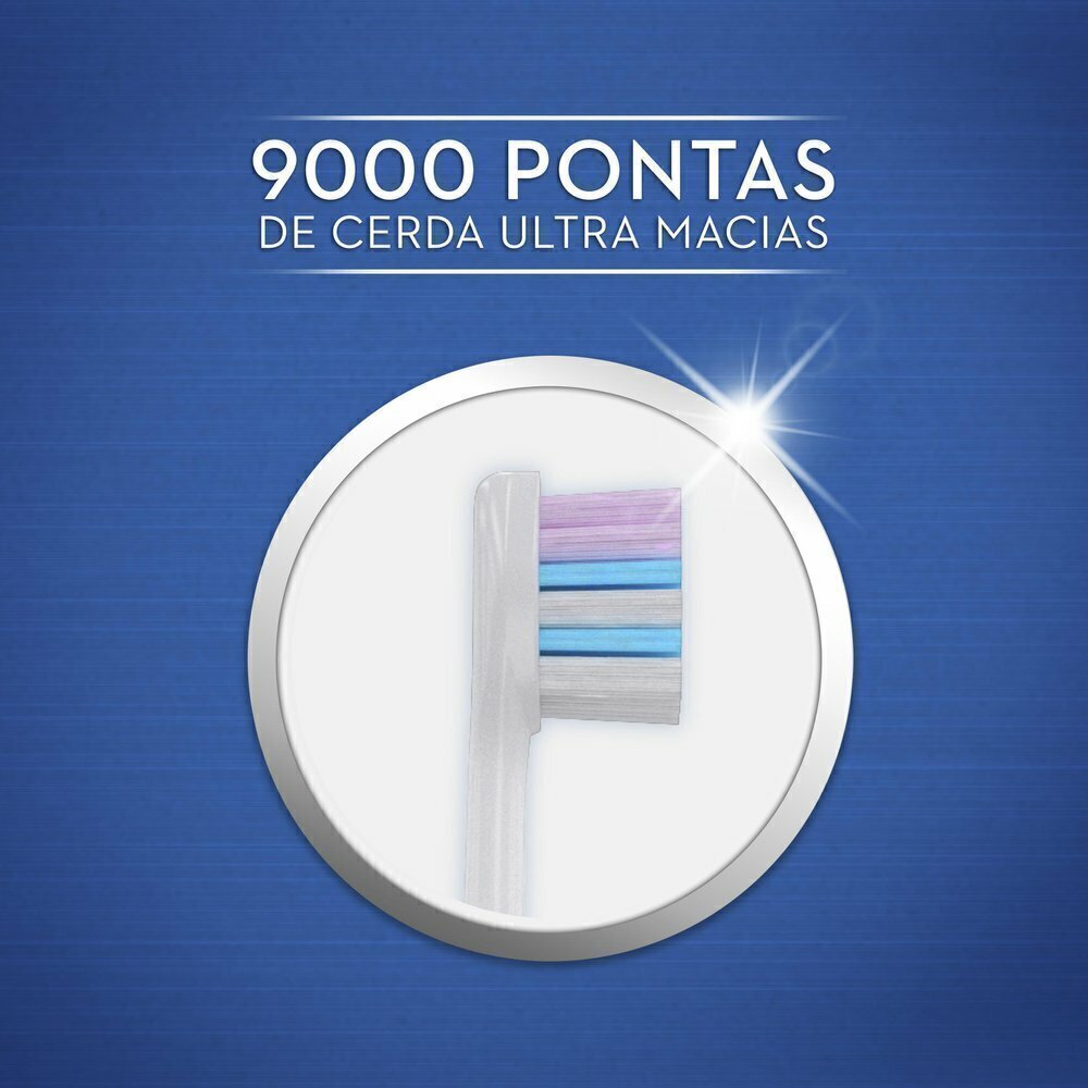 Uma escova ultra macia com 9000 pontas de cerdas, para uma limpeza sensível e com proteção especializada todos os dias. Possui uma cabeça compacta e oferece melhor alcance para limpar áreas difíceis. Além disso, apresenta uma tecnologia em suas cerdas, que muda de cor para indicar que chegou a hora de trocar sua escova. Formulada com base na recomendação dos dentistas de escovação pelo menos três vezes ao dia, e de troca da escova a cada 3 meses.