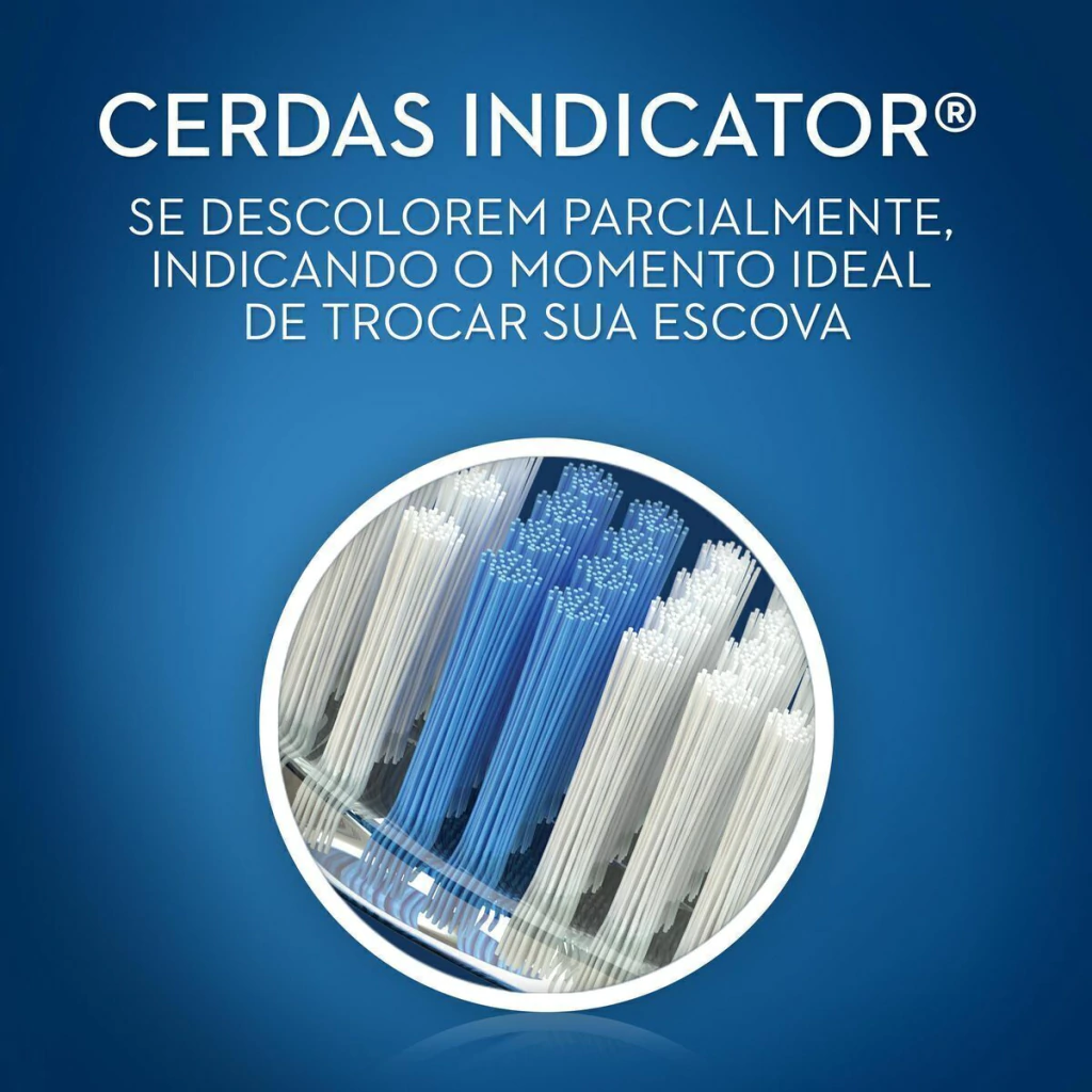 Escova com sistema de cerdas Indicator®, com pontas arredondadas, que sinaliza o momento ideal da troca da escova e possui cabo emborrachado que permite maior conforto durante a escovação (Cabo - Comfort Grip).* Gentis com seus dentes e gengivas.* Cerdas Indicator® que sinaliza o momento ideal da troca da escova.* Cabo emborrachado que permite maior conforto durante a escovação.* Contém 2 unidades.* Tamanho 35 Macia.*Imagens Meramente Ilustrativas.