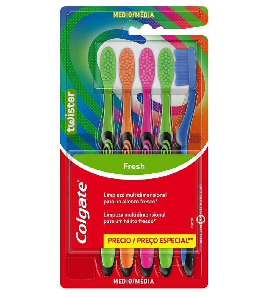 A Escova de dente Colors 5 Unidades é o pack perfeito para a família. Suas cerdas multidimensionais com desenho único se encaixam no contorno natural dos dentes e limpam entre os dentes e em volta da gengiva, promovendo uma higiene bucal efetiva. E para garantir uma limpeza completa da boca, possui limpador de língua. Disponível em 4 cores vibrantes.