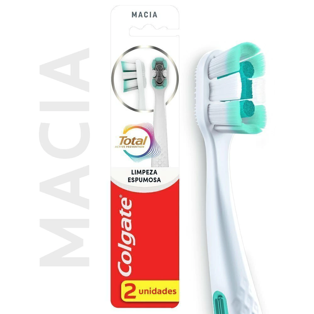 Para uma boa higiene bucal e prevenção, é essencial escovar os dentes pelo menos duas vezes ao dia. Para uma limpeza profunda de cada canto, recomendamos usar esta escova dental Colgate Total com a pasta de dente e o enxaguante bucal Colgate Total. Mais do que uma escova dental, é uma revolução na saúde bucal!